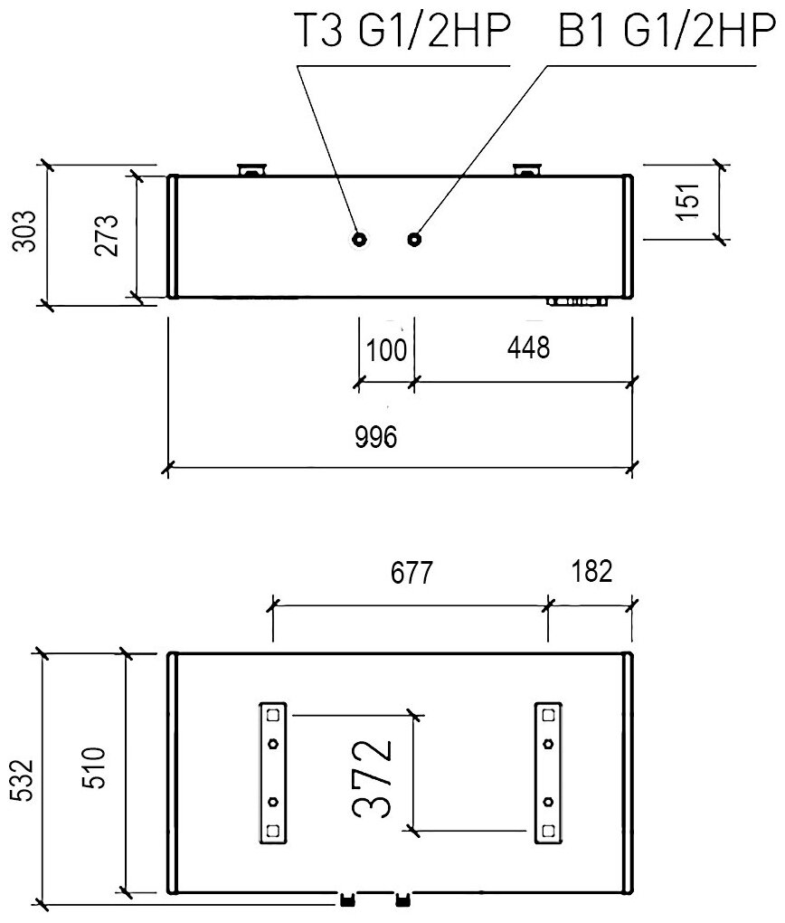 Расстояние от крепежных отверстий до патрубков, мм: 460