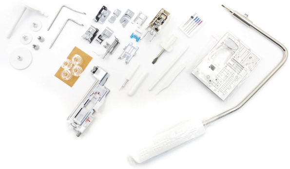 | Прочие особенности и свойства | Регулировка давления лапки на ткань Максимальная скорость шитья1000 ст/мин Коленный рычаг подъема лапки Расположение катушкигоризонтальное Линейка на корпусе Выполнение петлиавтомат, число видов петель:10 Строчкиобметочная, потайная, эластичная, эластичная потайная Швейный советник Работа с тонкими тканями Работа с грубыми тканями Число вышивальных алфавитов3 Комплектация Лапкидля вшивания молнии, обметочная Рукавная платформа Нитевдеватель Автоматический обрезатель нити Отсек для аксессуаров Переключатель положения иглы (верх/низ) Шитье без педали Дополнительная информациялапка для атласных строчек, светодиодная подсветка 6 ламп |