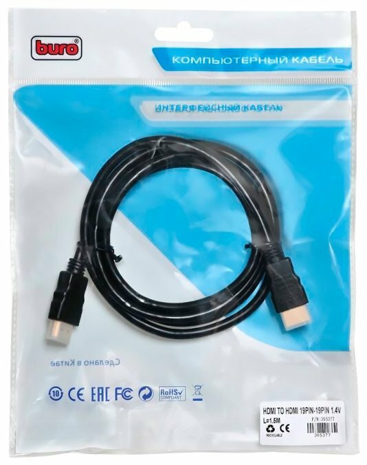 Кабель HDMI 1.5м BURO BHP HDMI 1.5 круглый черный