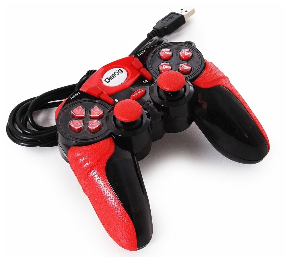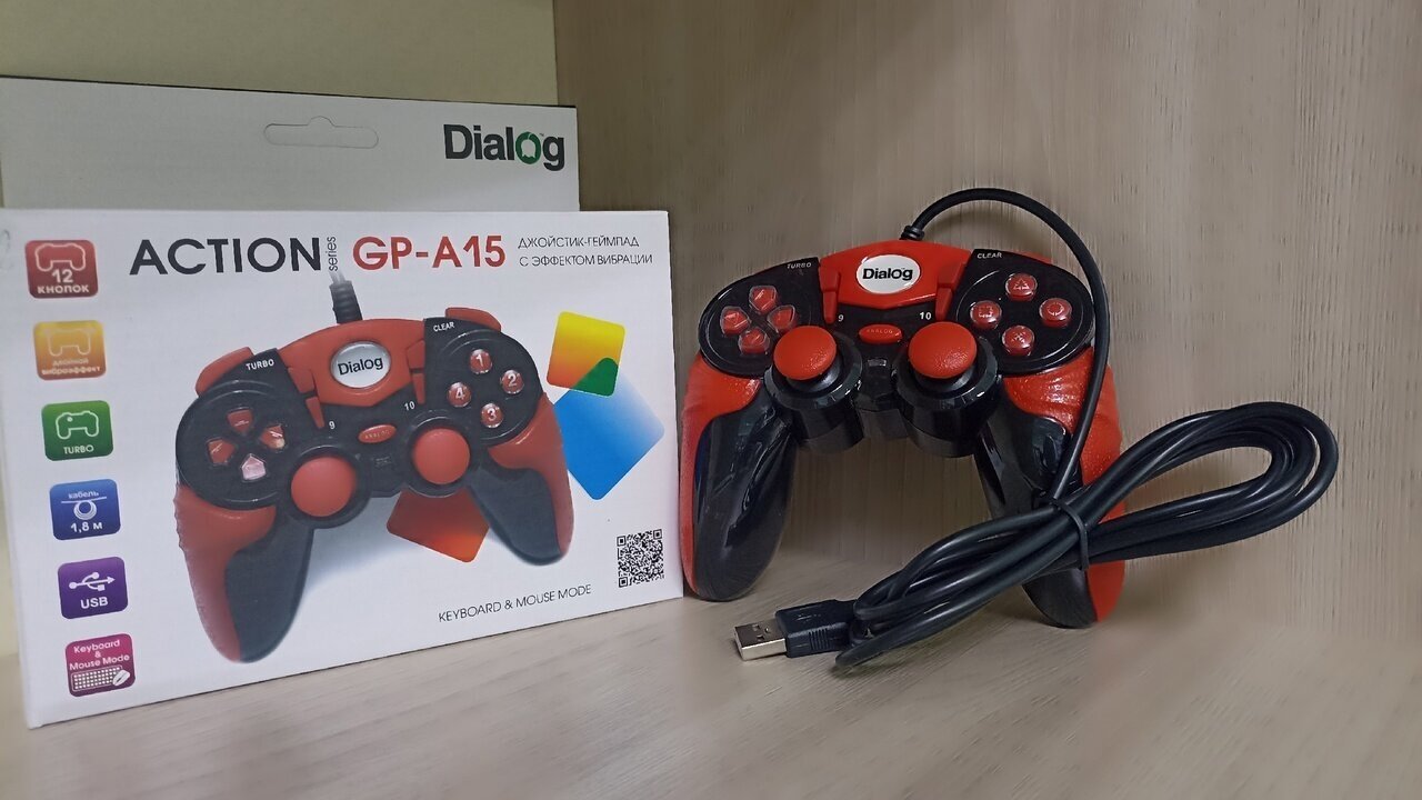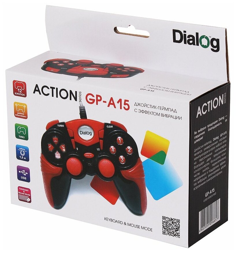Геймпад Dialog GP-A15 Action красный – цифровая панель под ПК для ценителей качественного и удобного геймплея. Контроллер хорош стильным дизайном и высокой производительностью. На панели расположено 12 кнопок, из них 8 кнопок полноценного управления. Вам будут доступны все основные игровые действия. Эффект полного погружения создается благодаря функции виброотдачи: теперь все атаки или столкновения Вы в буквальном смысле почувствуете на себе. Удобное расположение кнопок снижает до минимума напряжение пальцев. А эргономичный дизайн предотвращает скольжение и позволяет устройству удобно лежать в руке. Dialog GP-A15 Action подключается к ПК с помощью USB-порта. Кабель длиной 2 м обеспечит максимальную свободу передвижений для проводного контроллера.