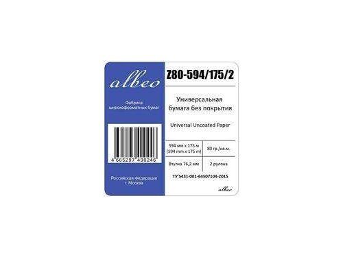 Бумага Albeo 23" 420мм-175м/80г/м2/белый для струйной печати (упак.:2рул) Z80-594/175/2