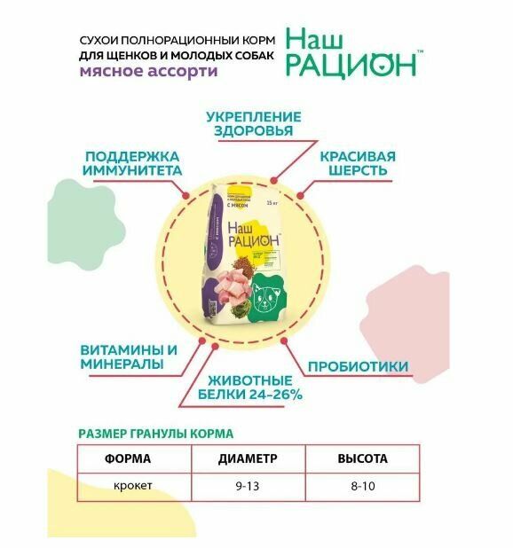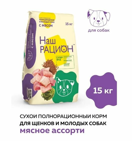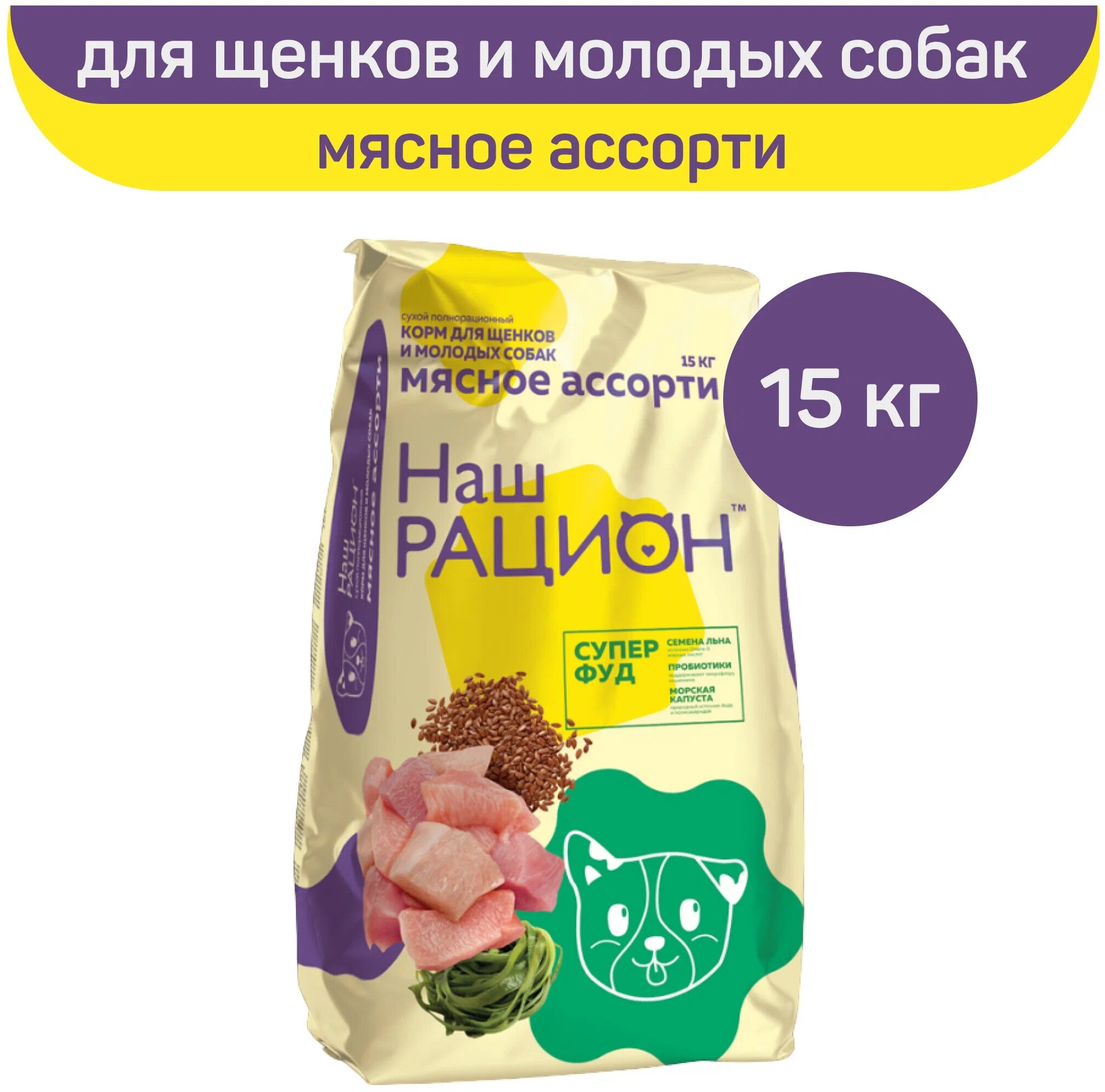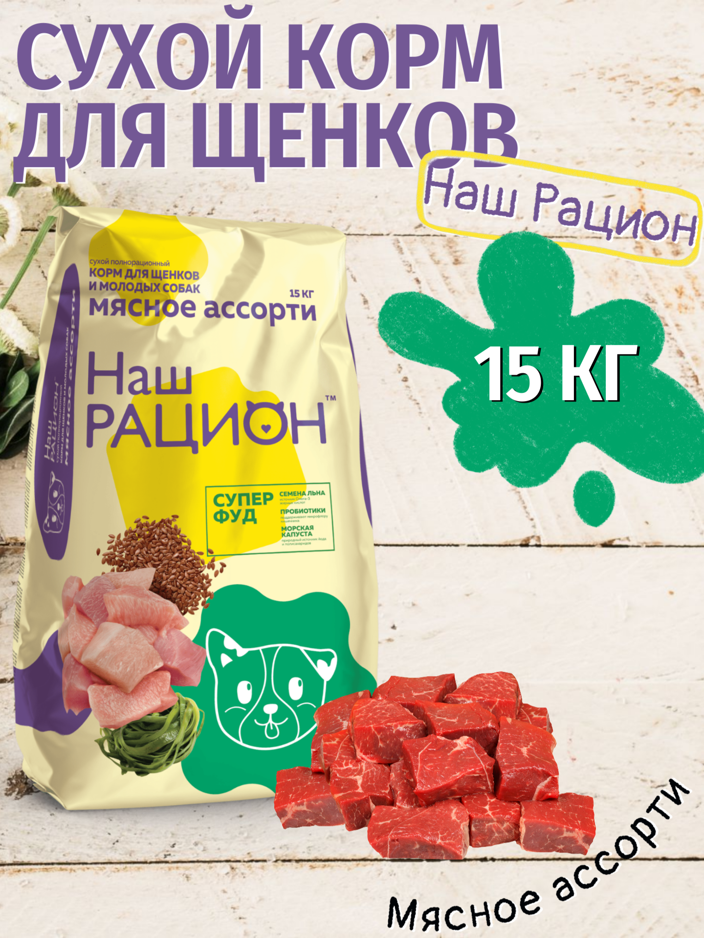 Сухой корм для щенков Наш Рацион Мясное ассорти 15 кг