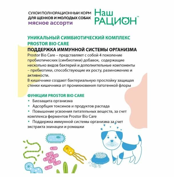 Сухой полнорационный корм для щенков и молодых собак Мясное ассорти 3кг. Корм не содержит искусственных красителей, ароматизаторов, ГМИ.