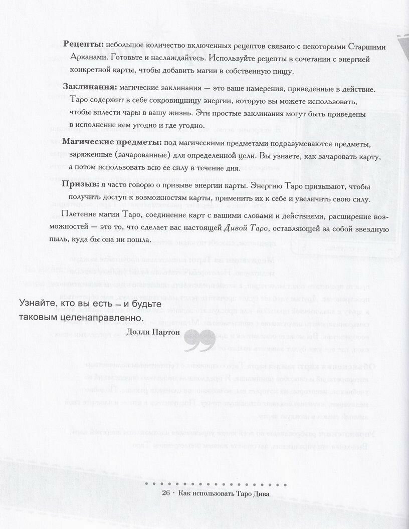 Подходит для тех, кто ищет что то особенное о таро. Здесь будет нескучно. Необычные трактовки. Рецепты о таро. Медитации. Расклады. Вся книга написана для того, чтобы тарологи стали Дивами. Популярными и знаменитыми. Вся книга в этом ключе. Даже есть стиль по таро. Мне понравилась эта находка. Подойдет для всех. Я в таро 10 лет, для себя тоже нашла новое. Поэтому как для новичков так и для продвинутых.