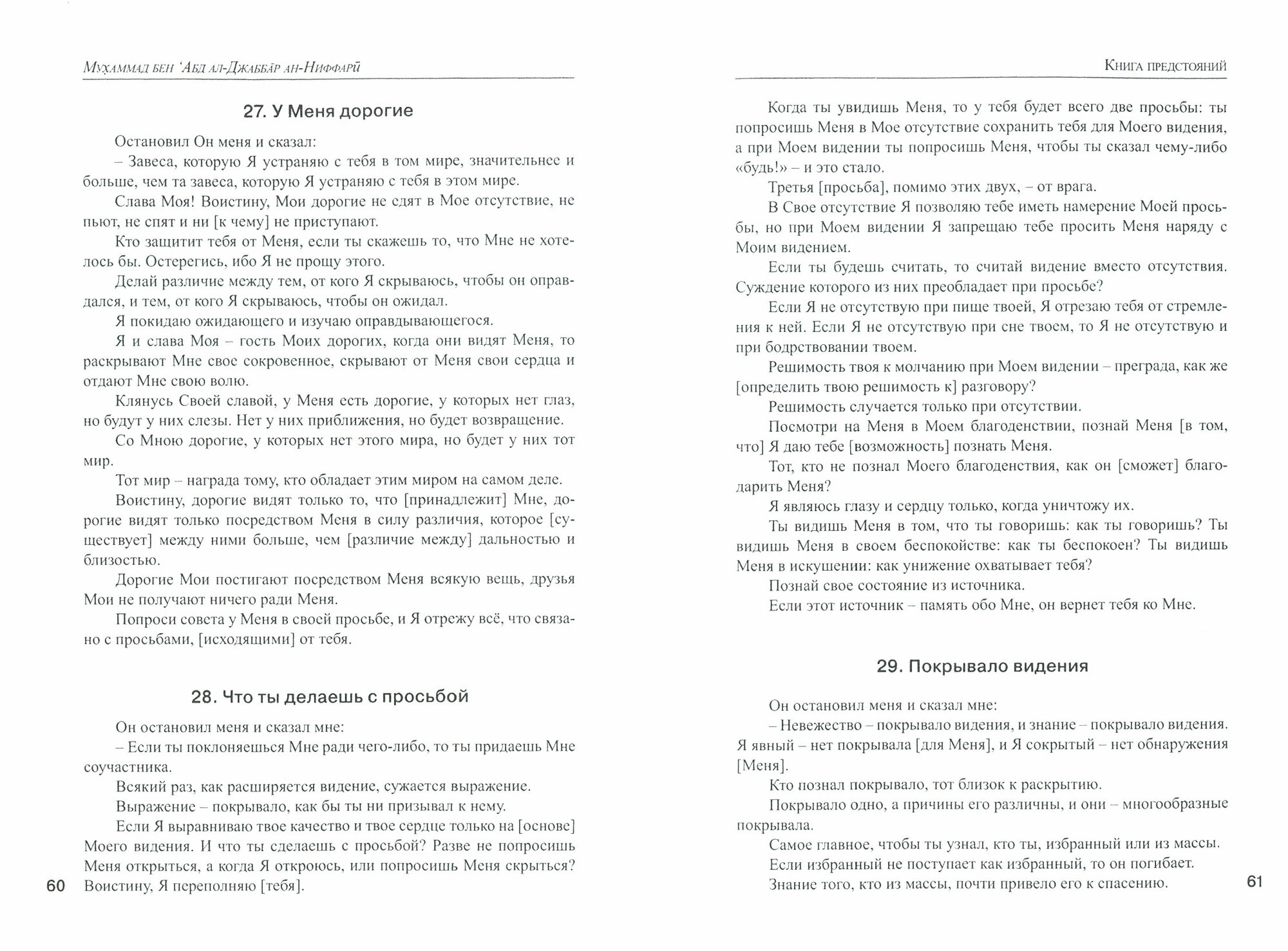 Впервые на русском языке публикуется перевод с арабского языка основных произведений одной из самых загадочных фигур в истории суфизма, арабского мистика X столетия Мухаммада бен 'Абд ал-Джаббара ан- Ниффарй.