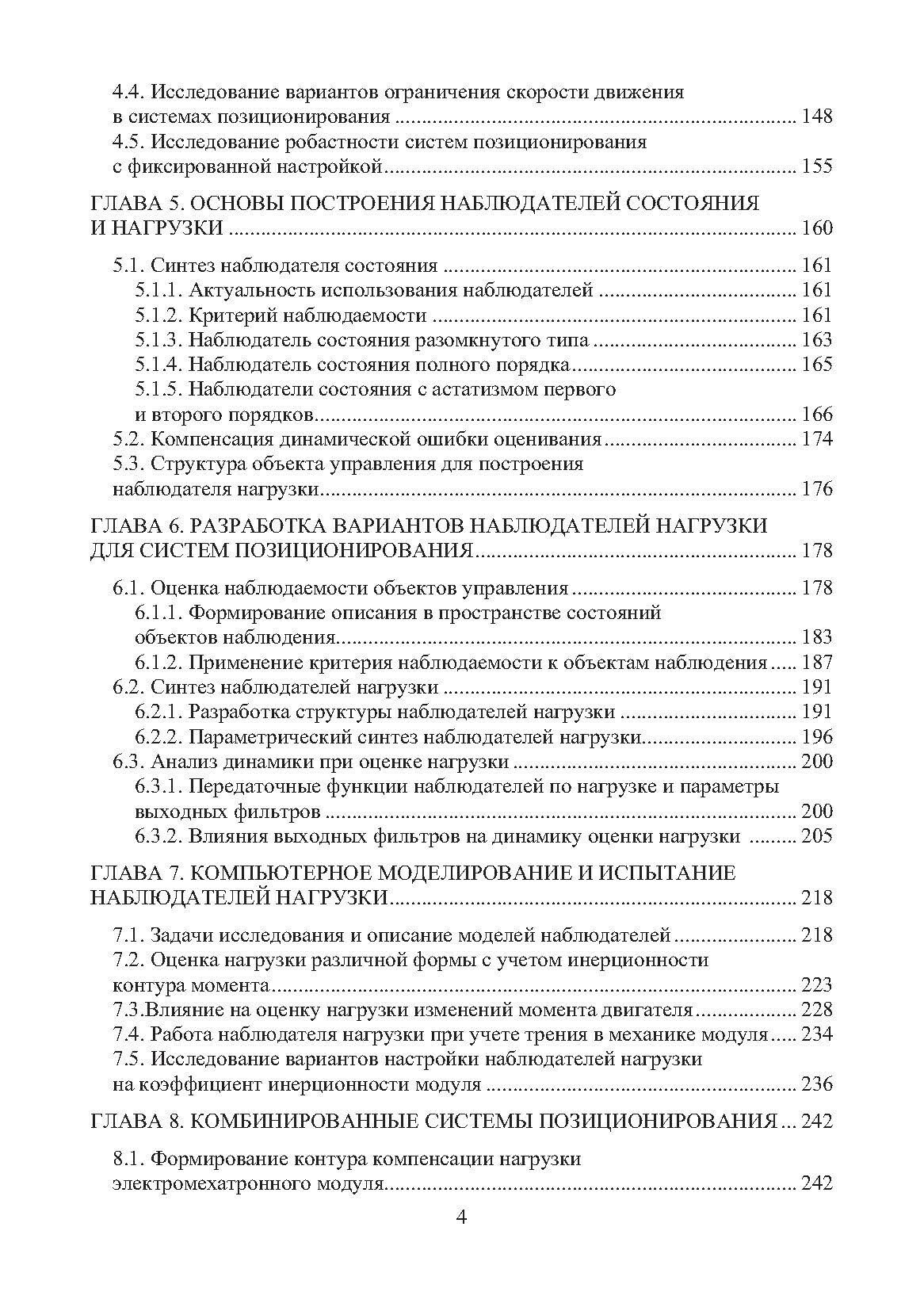 Представлены основные аспекты разработки систем позиционирования. Приведен анализ временных и частотных характеристик основных моделей динамики. Освещены вопросы компьютерного моделирования. Изложены теоретические основы и алгоритмы построения наблюдателей механической нагрузки электромехатронных модулей. Предложены методики расчета параметров статических и астатических регуляторов положения для электромехатронных модулей с жесткой механикой. Приведена структура комбинированных систем позиционирования.