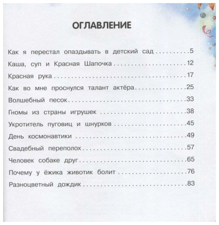 Кто бы мог подумать, что повседневная жизнь детского сада такая бурная и насыщенная событиями! Герои книги отправятся в космическое путешествие, спасут целый лес ёжиков и одну маленькую бездомную собачку Креветку. Не обойдется без таинственных историй и, конечно, дел сердечных. А еще маленькие читатели узнают как укротить пуговицы и шнурки, перестать опаздывать в детский сад, превратить обычный обед в спасательную операцию и еще много-много других секретов.