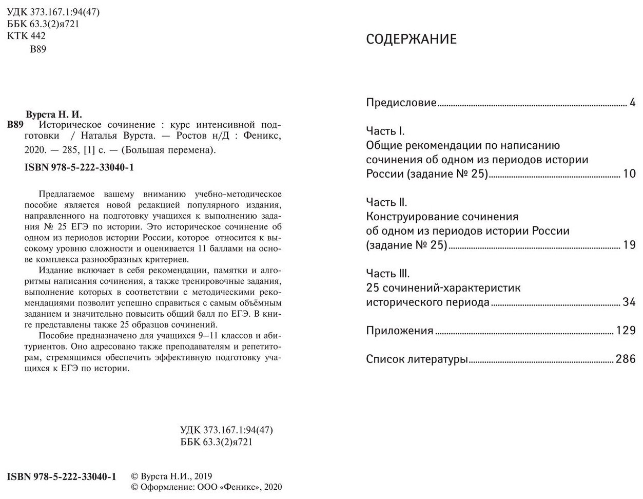 Издание включает в себя рекомендации, памятки и алгоритмы написания сочинения, а также тренировочные задания, выполнение которых в соответствии с методическими рекомендациями позволит успешно справиться с самым объёмным заданием и значительно повысить общий балл по ЕГЭ. В книге представлены также 25 образцов сочинений.