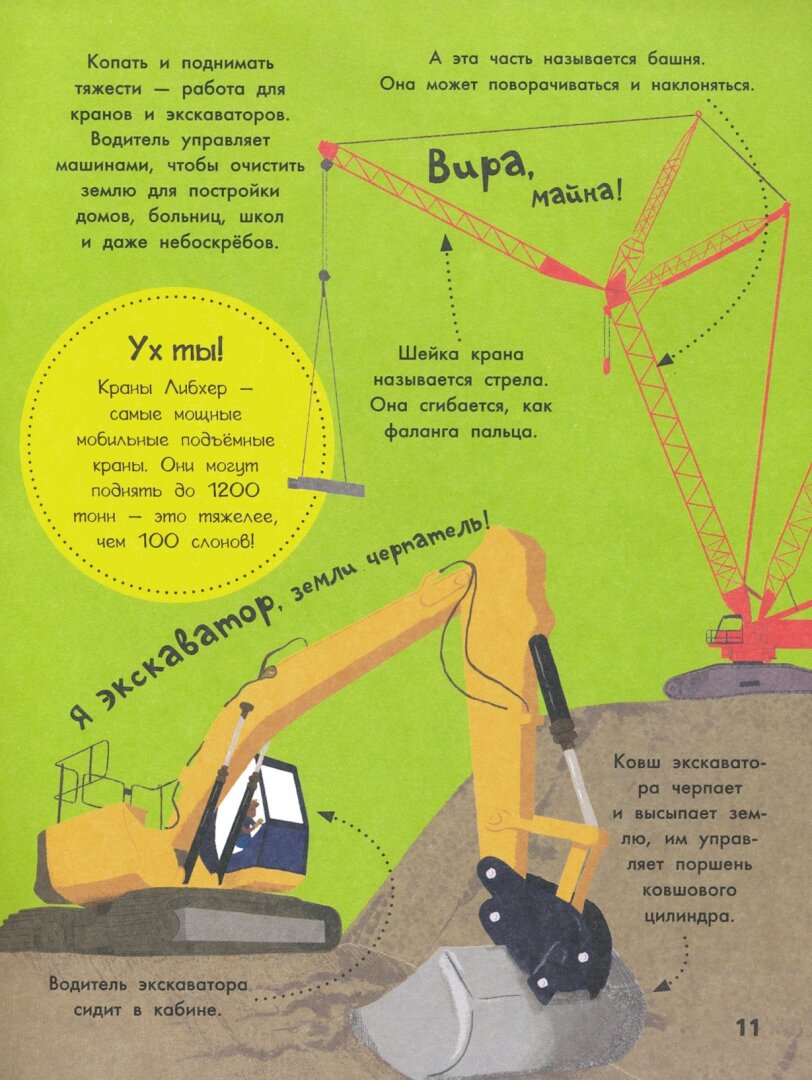 Читали вместе с сыном, а потом он меня отпустил и сам продолжил с не меньшим интересом. И я понял, что это то, что надо! Ребенку очень понравилось ее изучать! Коротенькие простые тексты, при этом не пустые, а познавательные. Картинки шикарные, узнаваемая техника, но без перегруза деталями, все сочно, но глаз не режет. Хорошая, добротная, веселая книжка! Мальчишкам точно понравится.