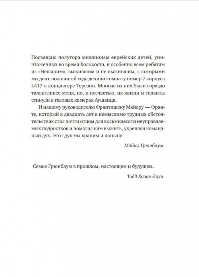Майкл Грюнбаум родился в 1930 году в Праге. После того как нацисты в 1939 году оккупировали Чехословакию, его отца арестовали и вскоре убили, а Миша в 1942 году вместе с матерью и сестрой попал в Терезин и пробыл там до конца войны. Майкл удивительно чётко вспоминает свои переживания, страхи, надежды - то, как чувствовал он это тогда, в свои 12-14 лет. Это повествование не просто "основано на реальных событиях" - это и есть реальные события.