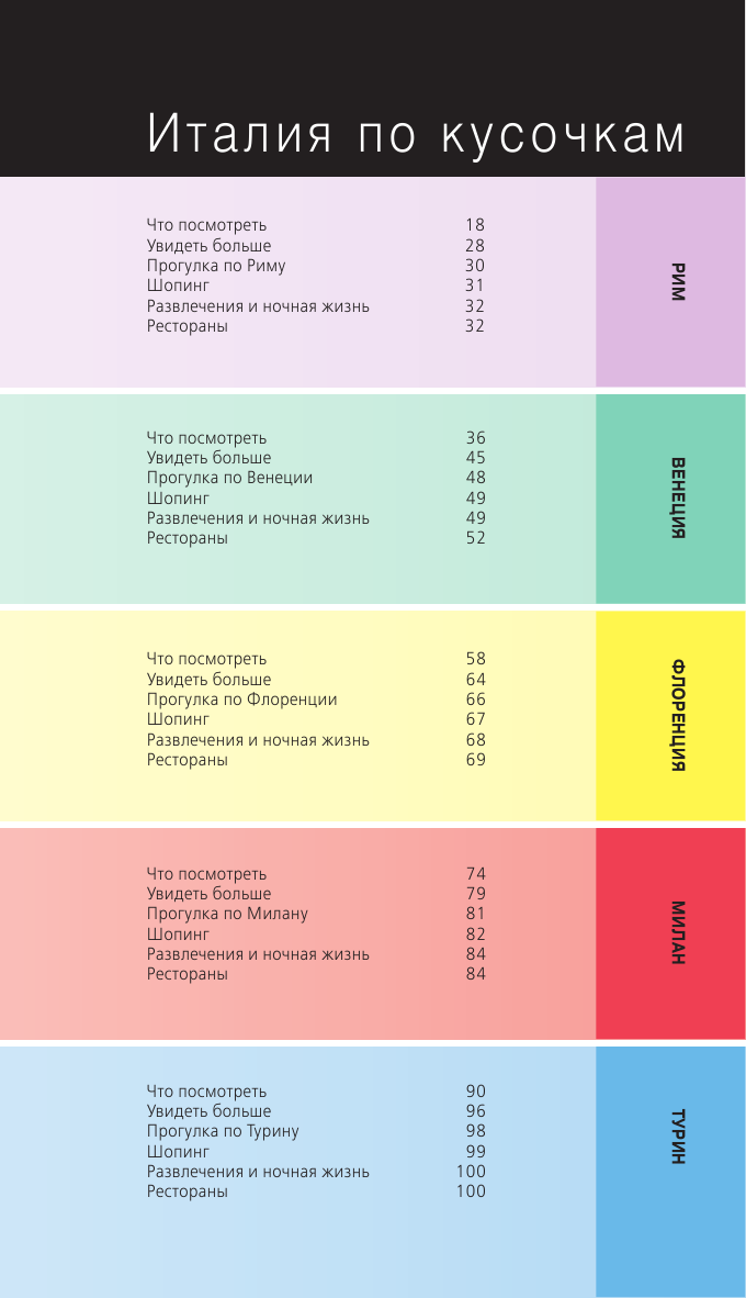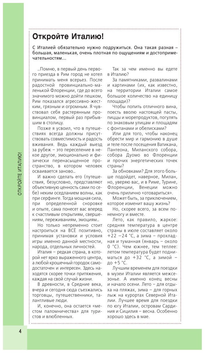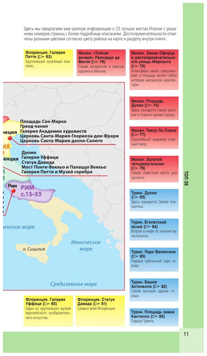 Мой лучший помощник в путешествии по Италии. Все основные достопримечательности этой страны в одной книге. Есть разделение по интересам (кому-то бары/клубы, а кому-то музеи и т.п), то есть тут каждый найдет что-то свое. Есть маршрут, по которому можно доехать до места. Да и фото, благодаря которым, можно решить для себя, хотелось бы посетить эту достопримечательность или нет. Книга легко вмещается в сумочку, всегда брала ее с собой.