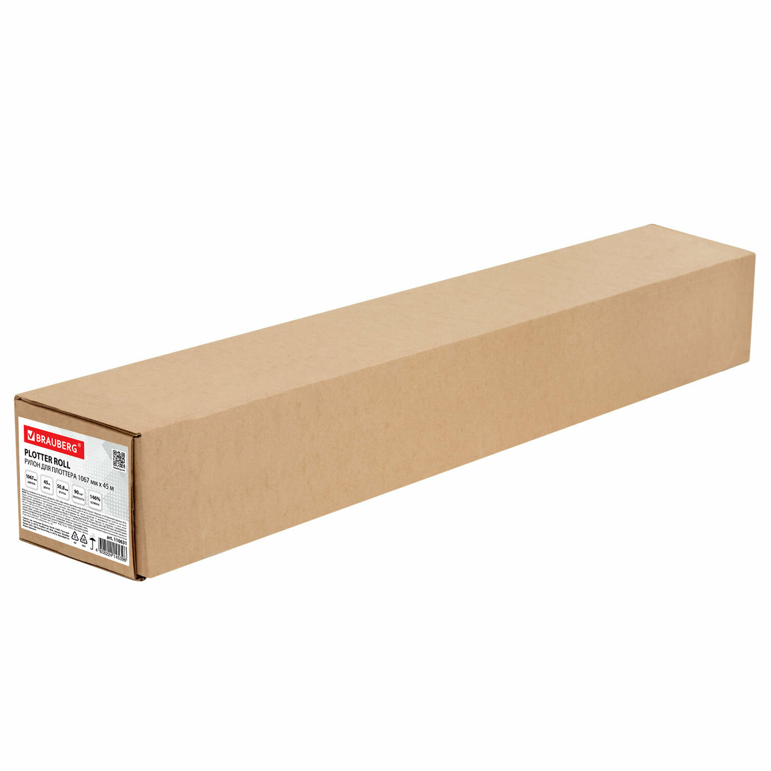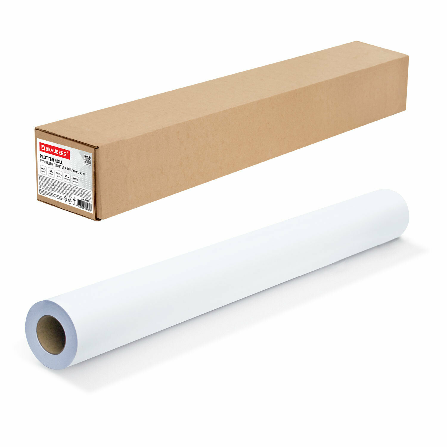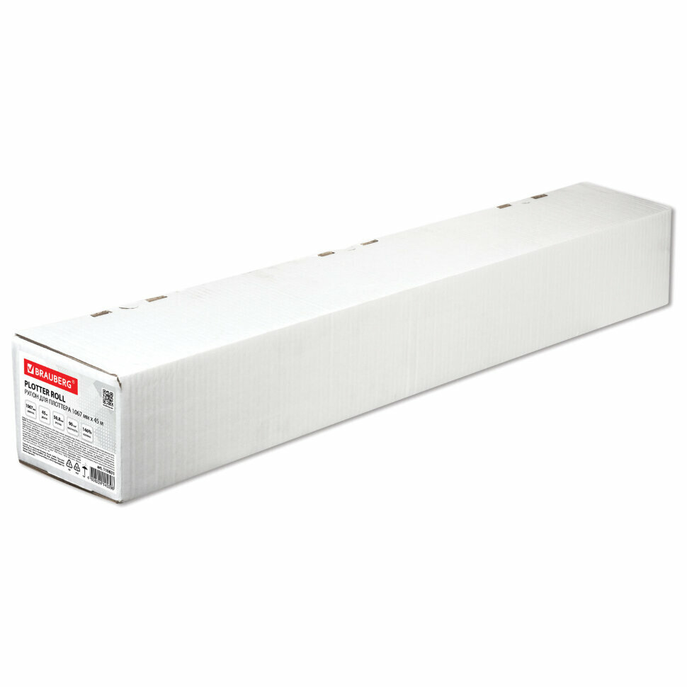 Рулон для плоттера 1067 мм х 45 м х втулка 508 мм 90 г/м2 белизна CIE 146% BRAUBER 110631 Brauberg