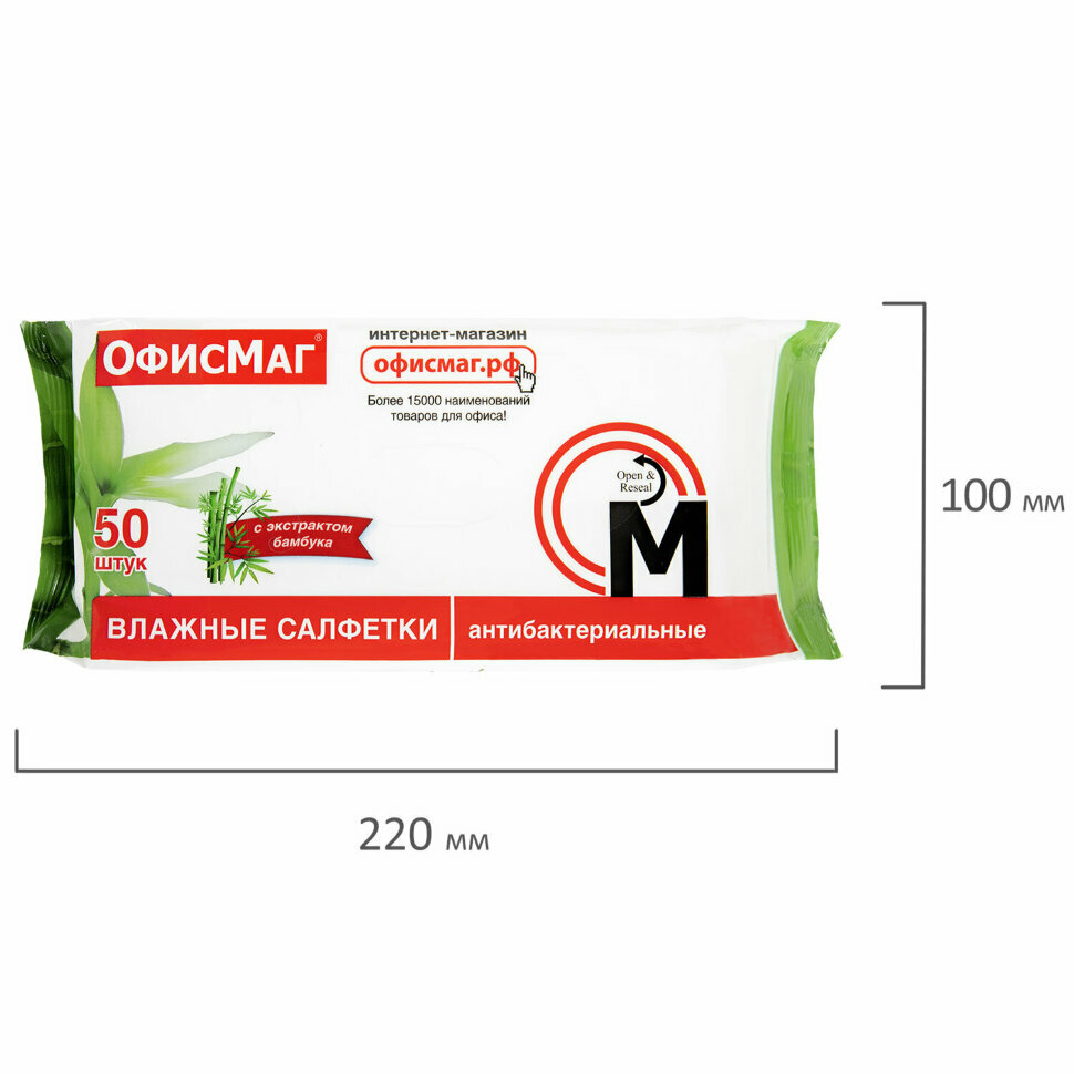 Салфетки влажные 50 шт. ОФИСМАГ антибактериальные с экстрактом бамбука 125962