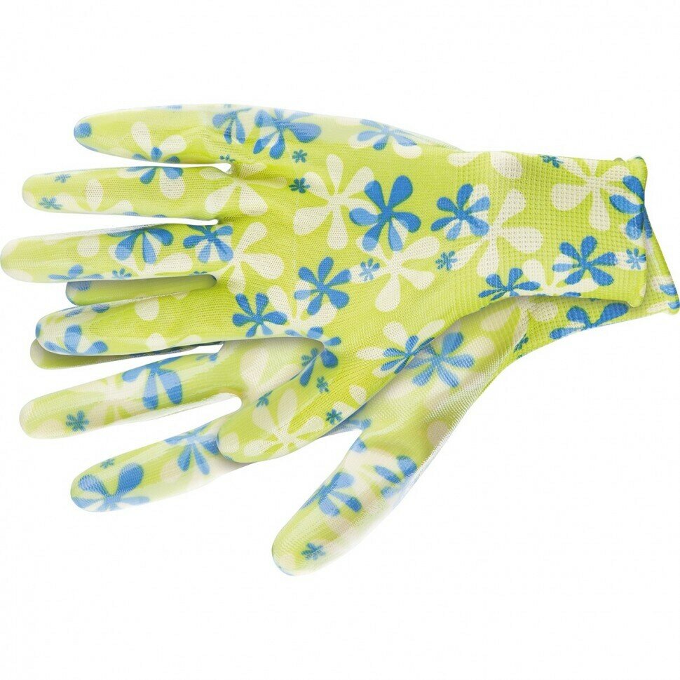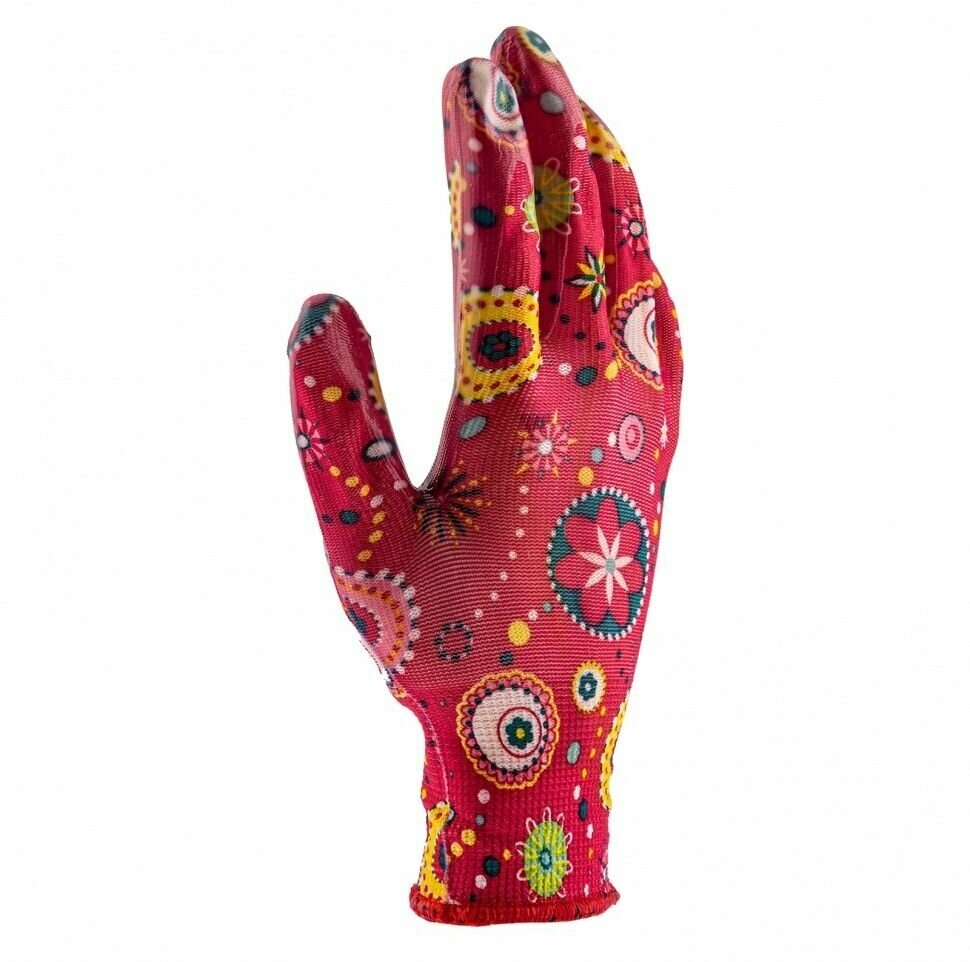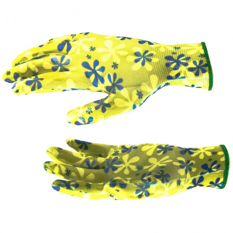 | Прочие особенности и свойства | Перчатки трикотажные кругловязаные., ПВХ-узор «Летний Сад» создаст особую атмосферу во время садовых работ и защитит руки от царапин, порезов и загрязнения., Класс вязки: 10., Плетение: 5 нитей., Состав |