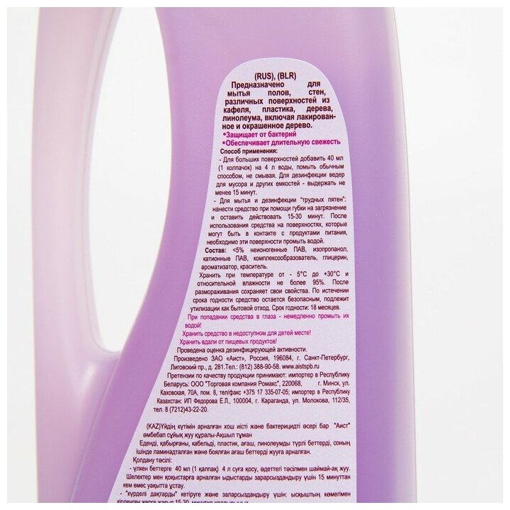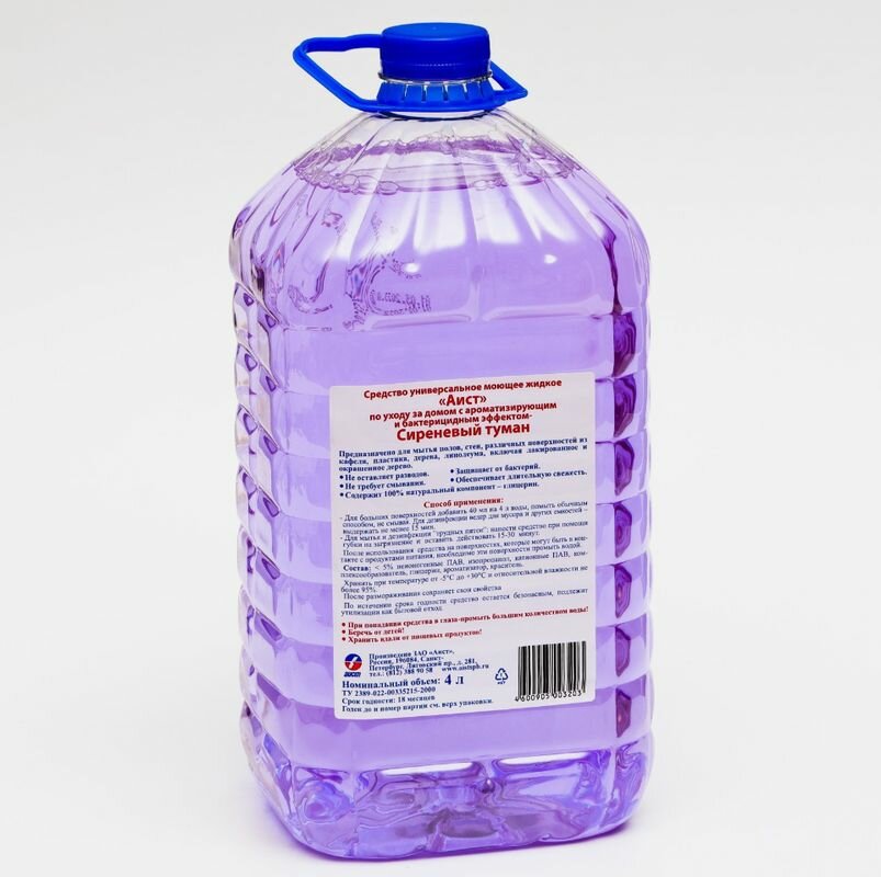 Сервис сравнения цен СкидкаГИД предлагает сравнить цены на товар «Средство для мытья пола и стен 4 л АИСТ "Сиреневый туман" универсальное ПЭТ 4303020072»