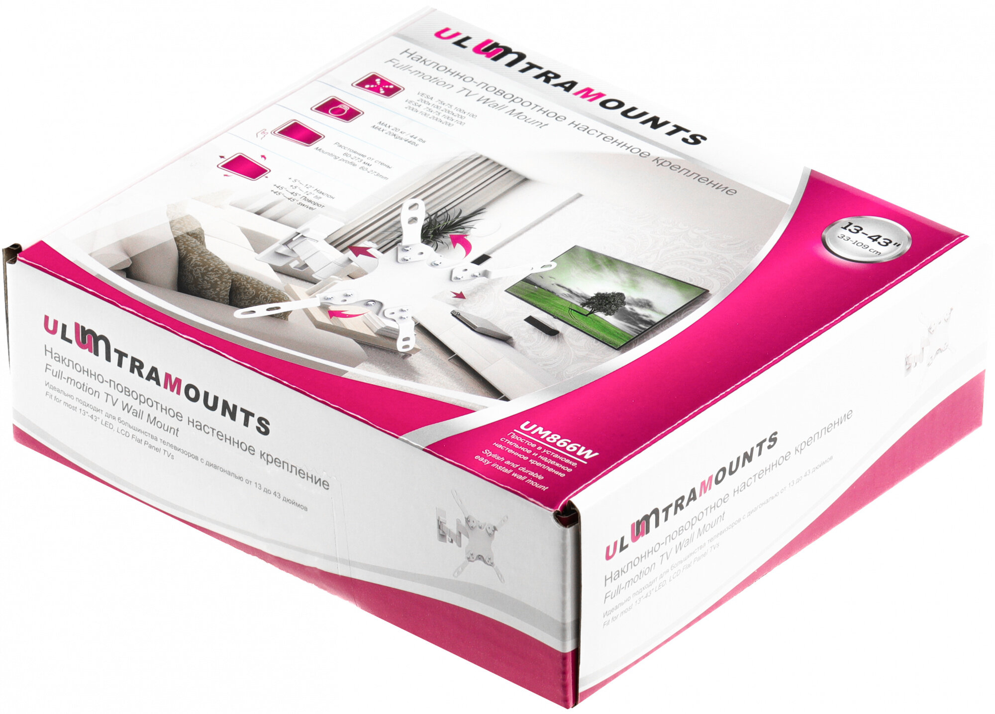 - UltraMounts UM866B. Установка телевизора на стену с помощью наклонно-поворотного кронштейна UM866B.