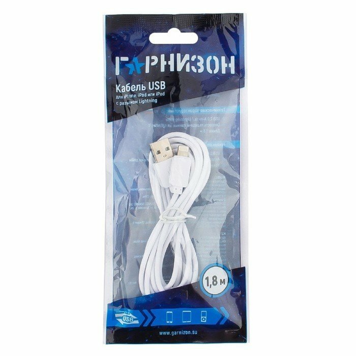 Кабель Lightning 1.8м Гарнизон круглый GCC-USB2-AP2-6-W