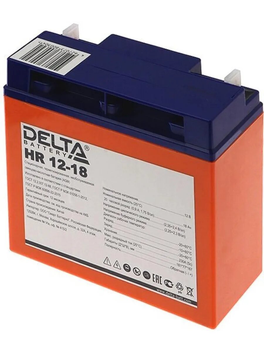 Батарея Delta HR 12-18 18Ач 12B HR 12-18 (оранжевый) (размер: 167x181x77мм)