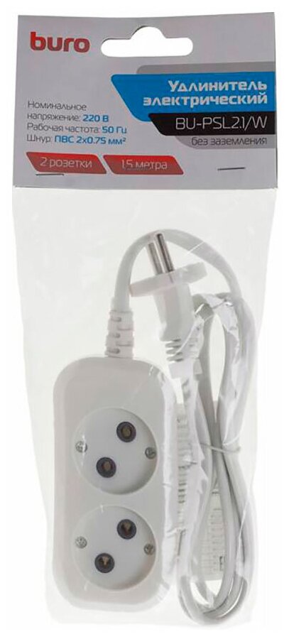 Удлинитель BURO BU-PSL2.1/W 2 розетки 1.5 м 475302
