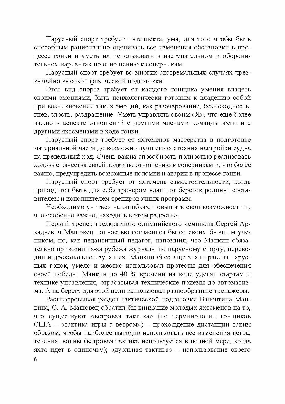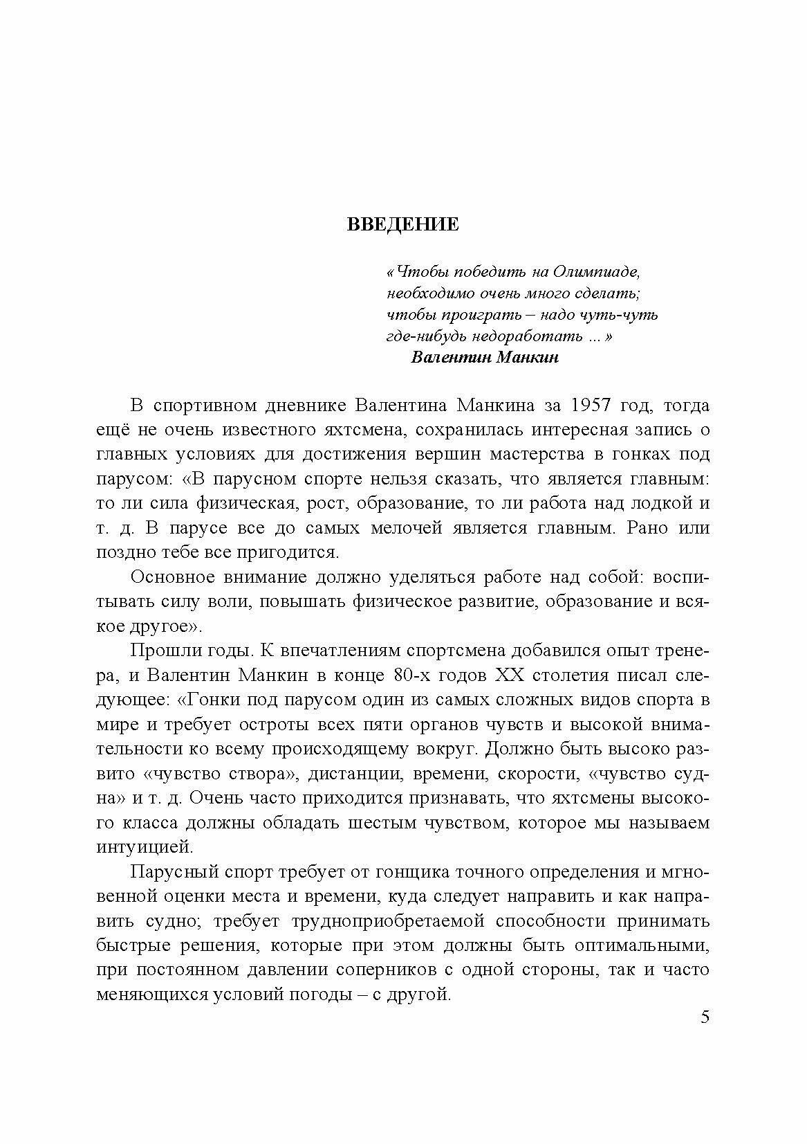 Учебное пособие является итогом многолетних исследований автора по парусному спорту. В работе приведен обзор основных литературных источников зарубежных стран и России, позволяющий охарактеризовать нюансы подготовки яхтсменов. Представлен развернутый анализ научных исследований 1984-2006 гг. по подготовке отечественных гонщиков: обоснование "ведущего физического качества"; взаимосвязь различных показателей и результативности соревновательной деятельности яхтсменов страны и т. д. Определены условия, способствующие успешной деятельности в парусном спорте. Учебное пособие представляет интерес как для профессиональных работников по парусному спорту, так и для широкой аудитории лиц, интересующихся этим интереснейшим видом спортивной деятельности. Может служить учебным пособием для студентов институтов физической культуры, колледжей, факультетов физвоспитания педагогических вузов, слушателей курсов повышения квалификации по парусному спорту.
