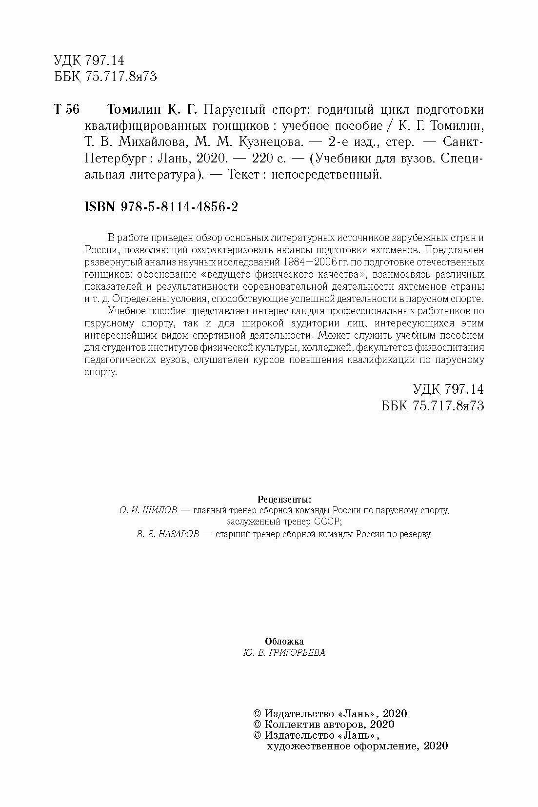 Парусный спорт. Годичный цикл подготовки квалифицированных гонщиков. Учебное пособие (Томилин Константин Георгиевич, Кухнецова Маргарита Михайловна, Михайлова Татьяна Викторовна); Лань, 2020