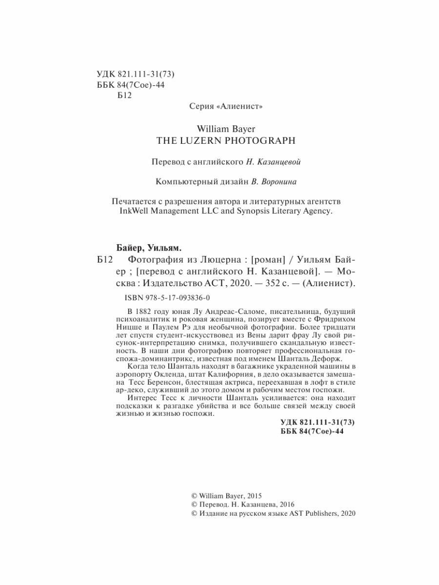 Книга: Фотография из Люцерна (Уильям Байер); Издательство АСТ, 2015