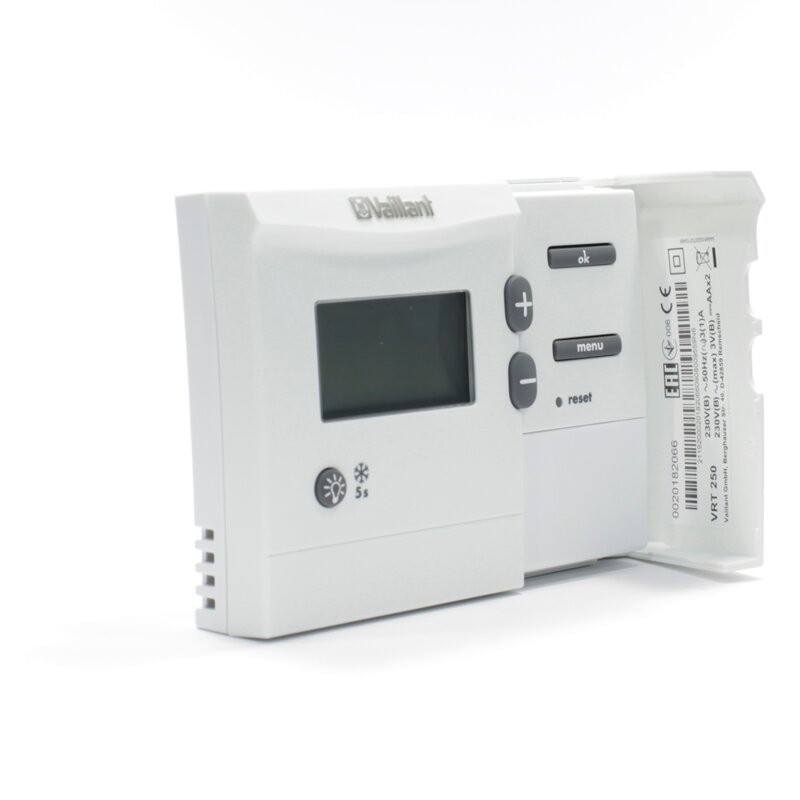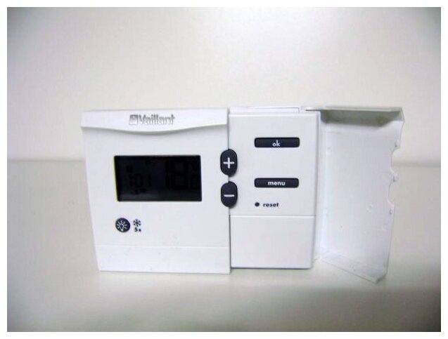 Комнатный регулятор температуры Vaillant предназначен для газовых и электрических котлов настенного типа. Обладает информативным дисплеем с повышенной четкостью. На дисплее отображается индикатор батареи. Предусмотрена возможность программирования на день и на неделю. Прибор оснащен функцией защиты от замерзания.