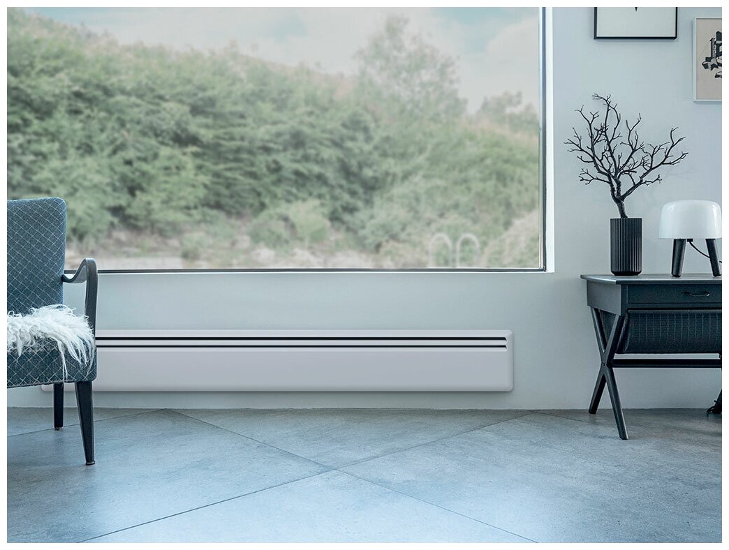 Благодаря использованию прецизионного термостата конвектор в режиме ожидания расходует не более 0,5 Вт. Обогреватель соответствует классу защиты IP 24. Может управляться как вручную при помощи термостата, так и удаленно, при условии подключения к системе Orion 700 или Nobo Energy Control. Конвектор может работать автономно или в единой цепи с другими обогревателями.