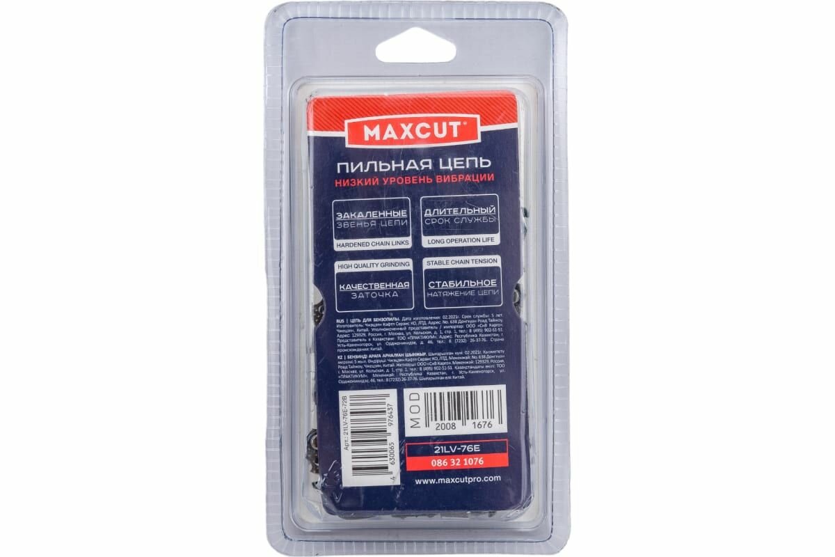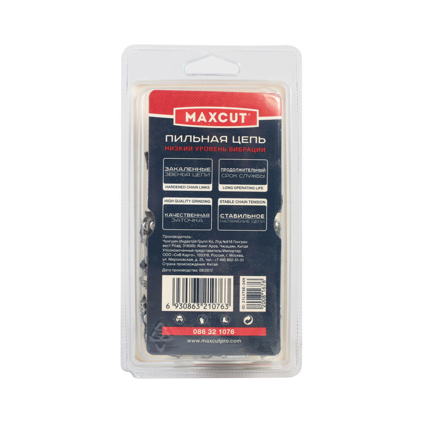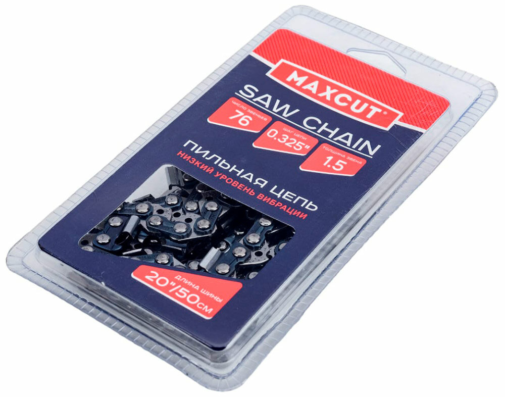 Пильная цепь MAXCUT для электрических и бензиновых пил. Рекомендуется для различных работ по валке леса, строительства деревянных конструкций, распила древесины, обрезки сухих ветвей деревьев, заготовки дров. Для нормальной работы цепи и увеличения срока эксплуатации требуется постоянная смазка и заточка. Пильная цепь затачивается обычным круглым напильником.Преимущества После заточки цепь не теряет своих свойств, т.к. заточка производится изнутри режущего зуба Цепь, имеющая 76 звеньев, порадует вас невысоким уровнем вибрации, за счет которого достигается комфортность работы с инструментом Цепь удобно приобретать для создания запаса оснащения, ведь она упакована в компактный блистер, подходящий для хранения с использованием вертикальной поверхности