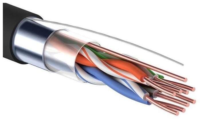 Кабель FTP 4PR 24AWG, CAT5e, наружный (OUTDOOR) (бухта 305 м) PROconnect. Экранированная витая пара, материал проводника высокоочищенная бескислородная медь,калибр (24 AWG). Материал оболочки — ПЭ (PE).