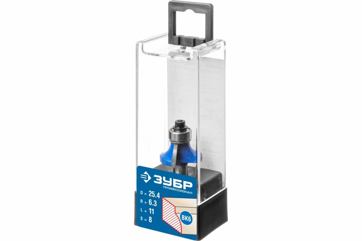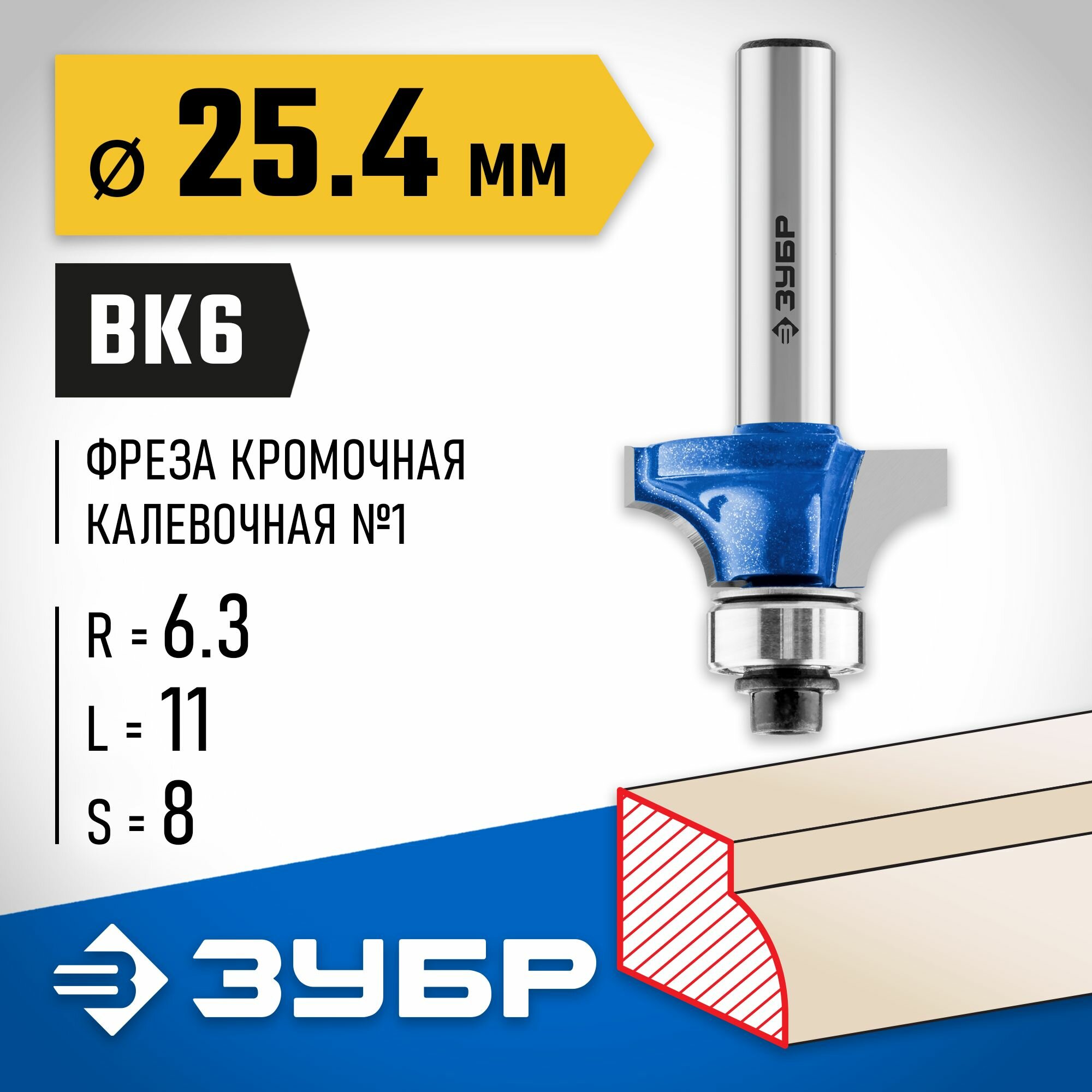 Фреза кромочная калевочная №1, D= 25,4мм, рабочая длина-11мм, радиус-6,3мм, хв.-8мм, d-12,7мм, ЗУБР Профессионал