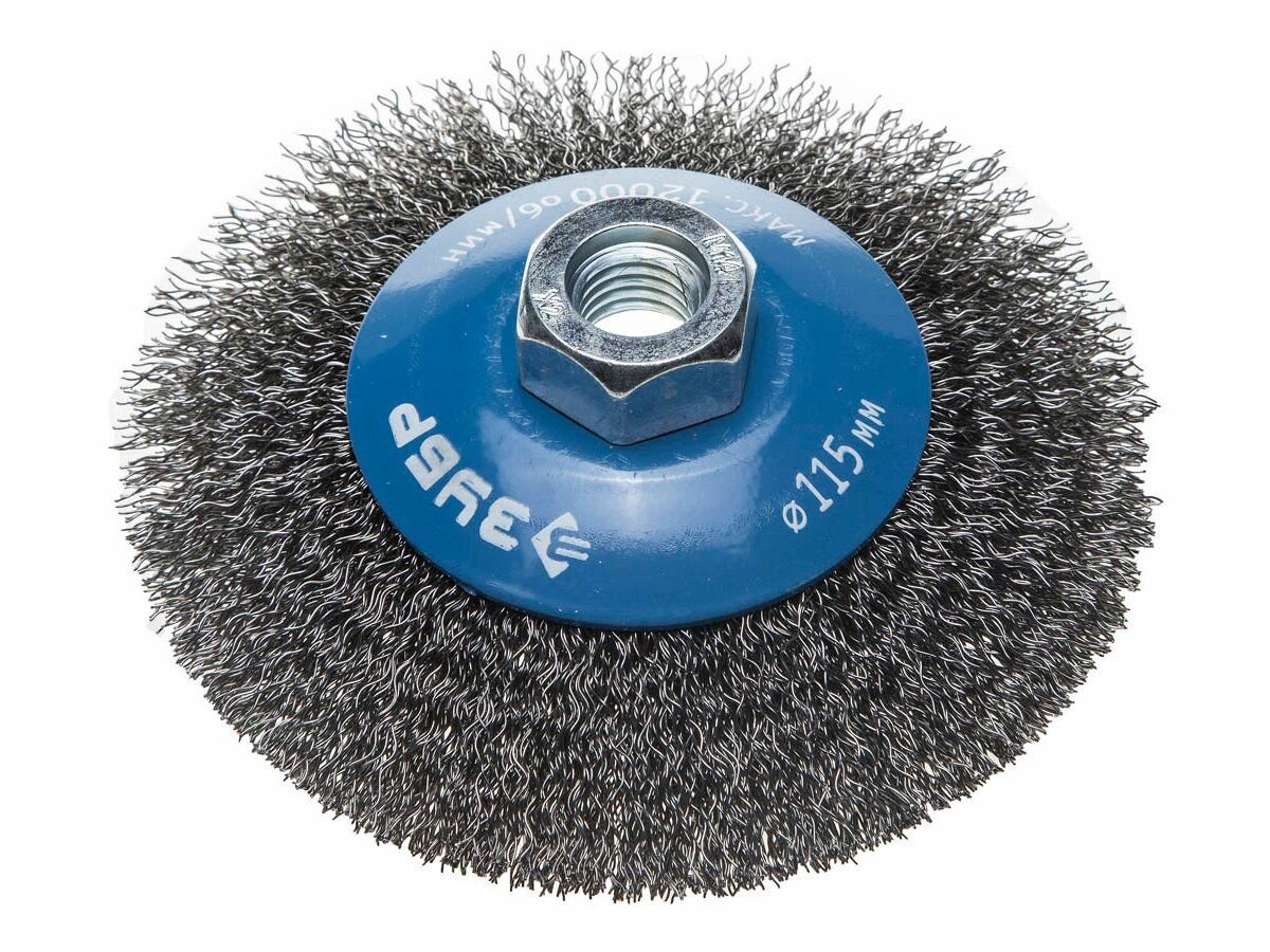 Коническая щетка для ушм ЗУБР тарелка 115мм для УШМ гофрированная сталь (35265-115_z02)