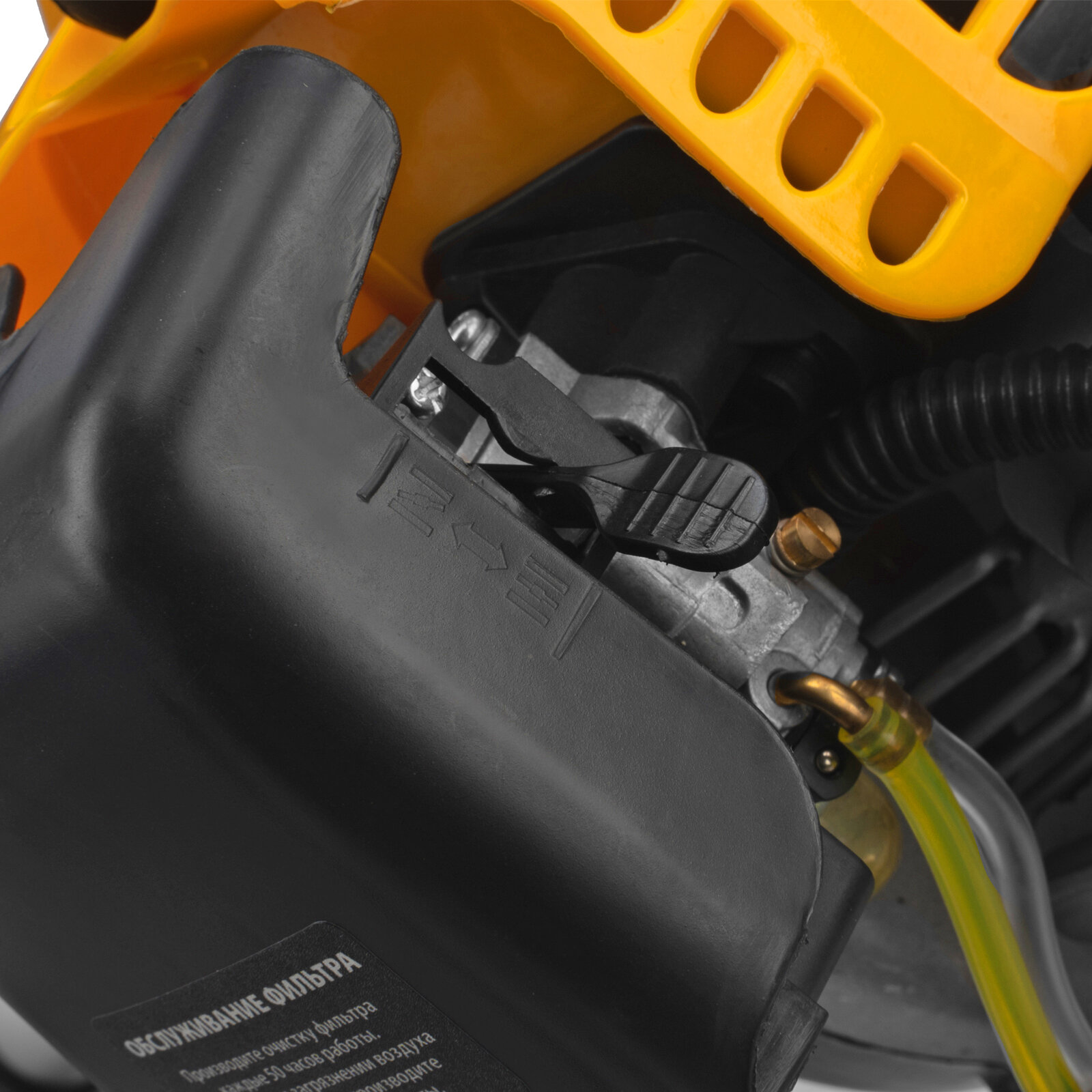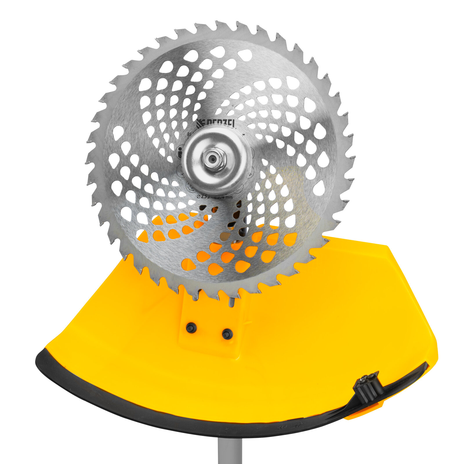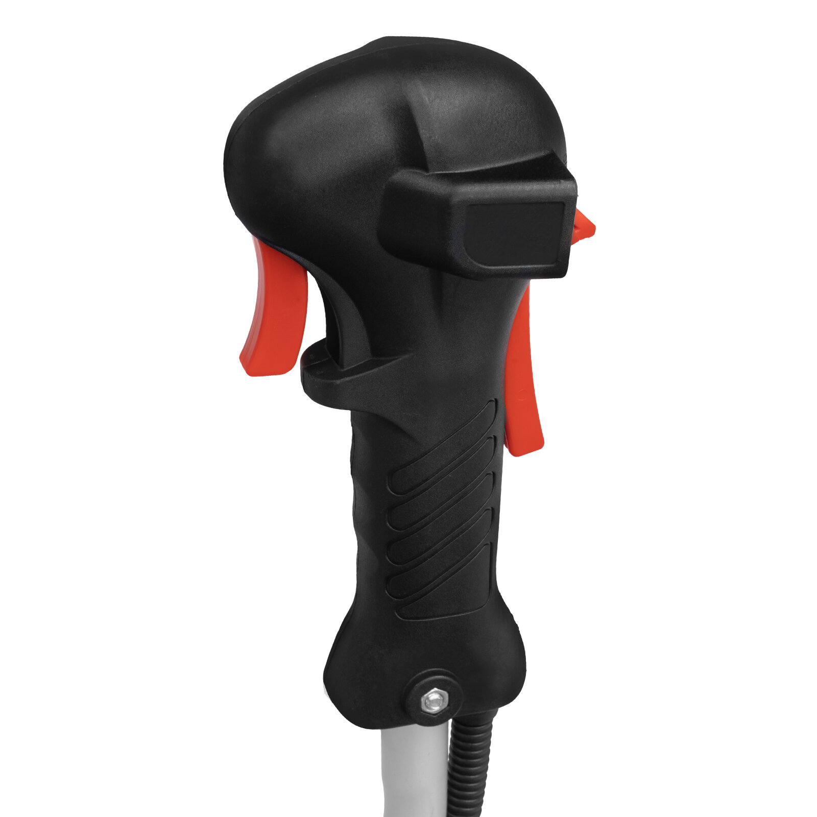 Бензиновый триммер Denzel DT-52E 962025 с двигателем объемом 52 куб. см, с неразъемной штангой и электростартером, поставляется комплектом из 2 частей и используется для ухода за дачным участком. С его помощью можно подравнять газон, скосить траву любого типа, в том числе с жесткими древовидными стеблями (полынь, крапива, лебеда, борщевик), а также срезать кустарник и молодые побеги деревьев с диаметром стволов до 10 мм. Триммер успешно справляется с этими задачами благодаря входящим в комплект катушке с леской и пильному диску с шириной скашивания 42 и 25,5 см соответственно. На штангу уже установлен редуктор и корпус сцепления, что упрощает подготовку инструмента к работе.ПреимуществаВысокий ресурс — благодаря хромированному цилиндру двигателя, прочному сцеплению и надежному редуктору триммер выдерживает работу при повышенных нагрузках.Безопасность — блокиратор курка газа препятствует случайному запуску двигателя, прочный пластиковый кожух защищает пользователя от летящей травы, грязи и прочих твердых частиц.Легкий запуск в любых условиях — благодаря электростартеру двигатель запускается одним нажатием на кнопку, а праймер для подкачки топлива облегчает запуск после длительного перерыва.Круиз-контроль — двигатель поддерживает заданные обороты, что позволяет не отвлекаться на регулировку скорости во время длительной работы.Полуавтоматическая система подачи лески — удлинить ее можно прямо во время работы — достаточно слегка ударить катушкой о землю.Автоматическая подрезка лески — нож на кожухе укорачивает концы корда до нужной длины, что предотвращает перегрузку двигателя.Легкое управление — все функциональные клавиши вынесены на правую рукоятку.Максимально комфортная работа — благодаря плечевому ремню триммер удобно удерживать, а мягкая пластина предохраняет пользователя от вибраций и ударов штангой по бедру.Полный комплект поставки — аккумулятор, зарядное устройство и удобный дозатор для приготовления топливной смеси прилагаются к триммеру.Дополнительные возможности — можно приобрести и установить на триммер диски Denzel 96323, 96325 для быстрого удаления растительности с жесткими стеблями (полыни, крапивы, лебеды), 96328 для скашивания молодых побегов кустарника диаметром до 3 мм.Гарантия 3 года — высокое качество техники подтверждено производителем.