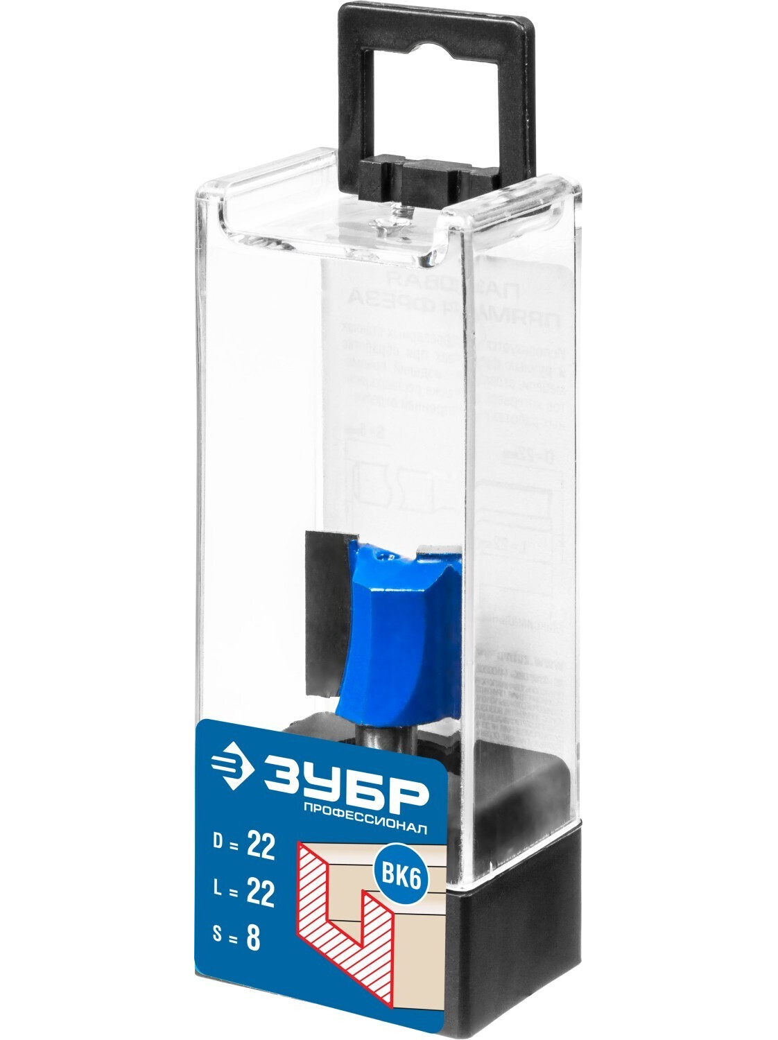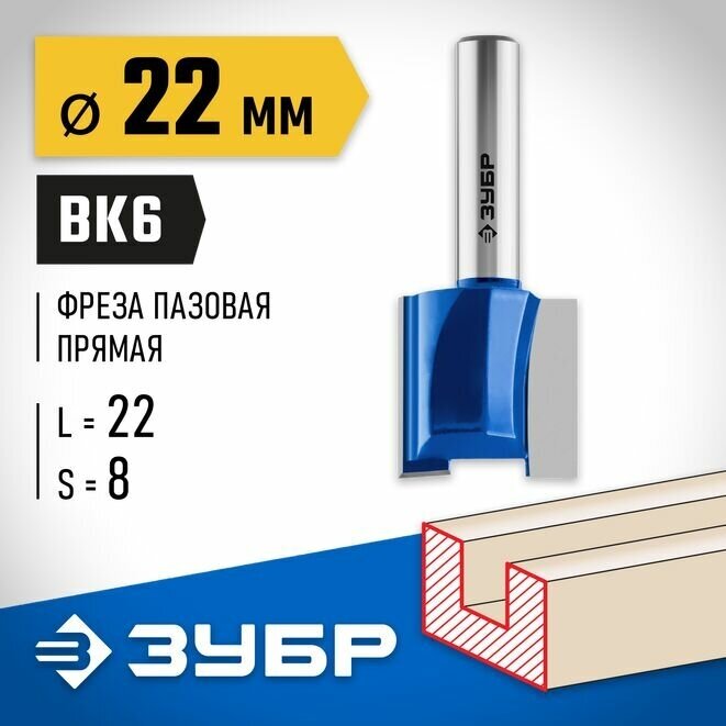 Фреза пазовая прямая, D= 22мм, рабочая длина-22мм, хв.-8 мм, ЗУБР Профессионал