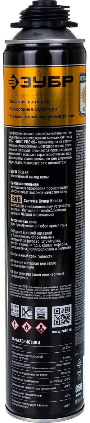 Пена для монтажного пистолета ЗУБР Gold pro 65