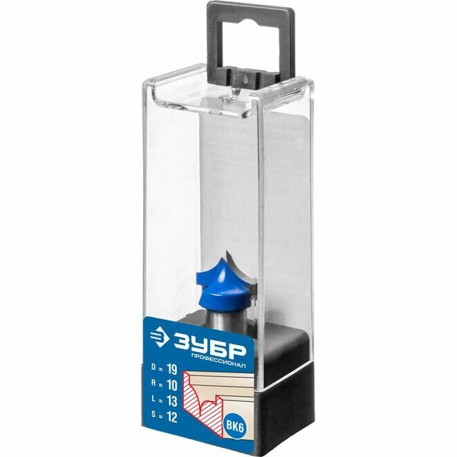 Фреза пазовая фасонная №4, D= 19мм, рабочая длина-13мм, радиус-10мм, хв.-12 мм, ЗУБР Профессионал