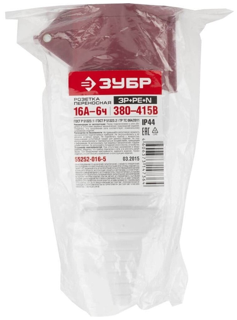 Переносная розетка Зубр мастер 16A, 400B, 6ч 55252-016-5 предназначена для подключения мобильного и стационарного оборудования на удалении от стационарной розетки. Корпус изделия выполнен из термостойкого самозатухающего пластика. Розеточные узлы изготовлены из фосфористой бронзы. Наличие крышек обеспечивает степень защиты от пыли и влаги IP44. Сальник исключает повреждение кабеля в месте изгиба. Кол-во контактов: 3Р+РЕ+N Напряжение сети: 400 ВПараметры и функции-Кол-во контактов: 3Р+РЕ+N -Степень защиты: 44 IP-Напряжение сети: 400 В-Сила тока: 16 А-Заземление: Да -Профильподключения: 6 часов
