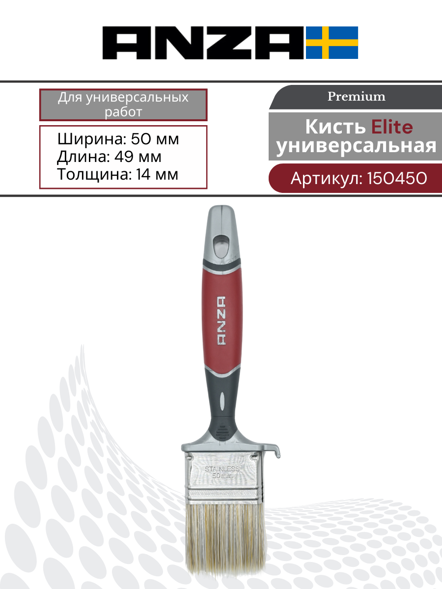 Плоская кисть Elite — это прекрасный выбор для маляра любой квалификации, как профессионала, так и домашнего мастера, желающего добиться по-настоящему качественных результатов покраски. Эта кисть предназначена для отделочных работ различной сложности (например, для покраски дверей, мебели, стен, полов, потолков и т.д.), выполняемых внутри и снаружи помещений. Кисти Elite вбирают много краски и обладают замечательной покрывающей способностью. Их головки с синтетическими волокнами отличаются очень высоким качеством и предназначены для любых видов краски (как на водной, так и на масляной основе). Они обеспечивают превосходное качество отделки и отличный результат. Кисти Elite обладают эргономичными рукоятками, позволяющими точно наносить краску. Эти кисти оснащены ободками из нержавеющей стали, а также запатентованным креплением Anza для размещения на емкости с краской. Может использоваться с удлинителями Anza.