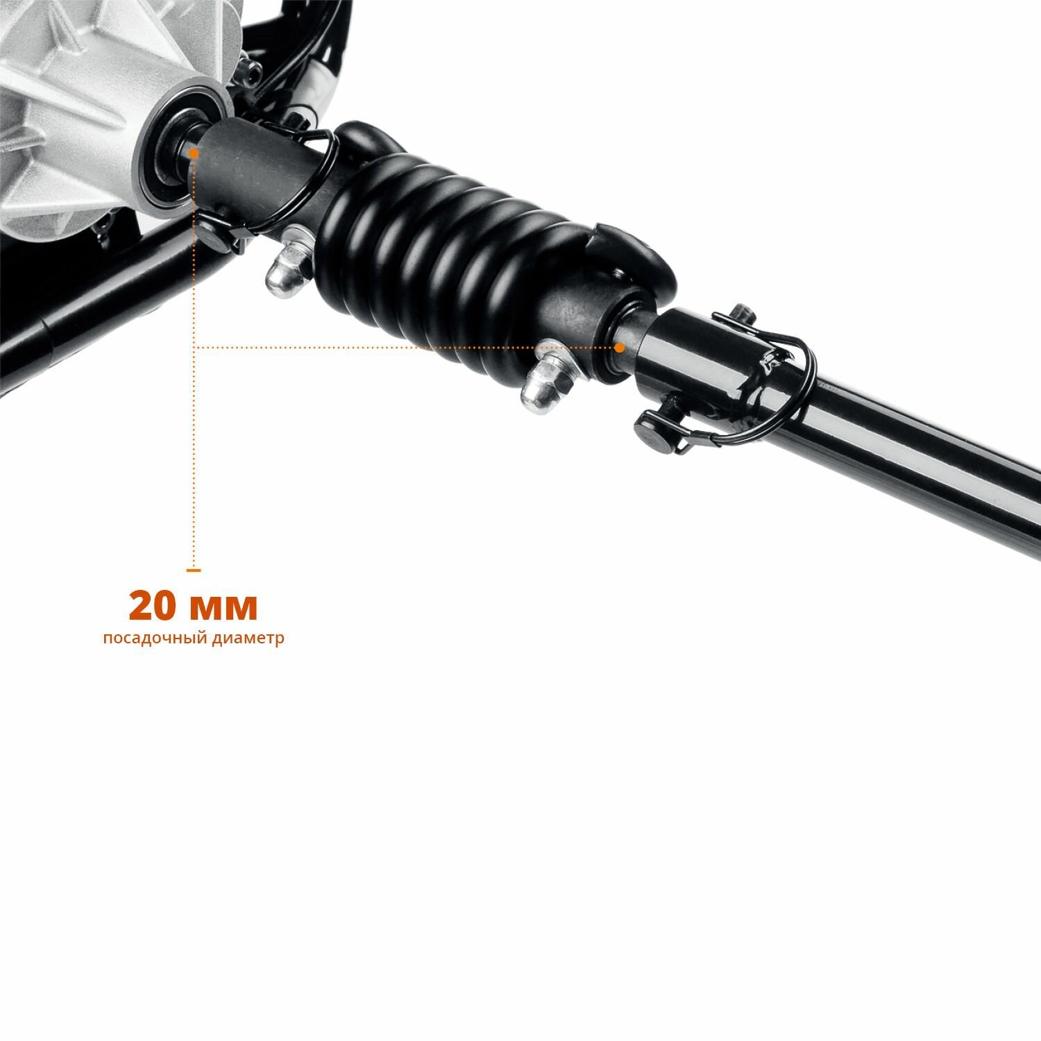 Пружинный адаптер ЗУБР смягчает удары, передающиеся от шнека к редуктору мотобура при попадании шнека на камень или другую твердую поверхность. Таким образом, приспособление продлевает ресурс редуктора мотобура и снижает уровень травматизма