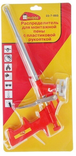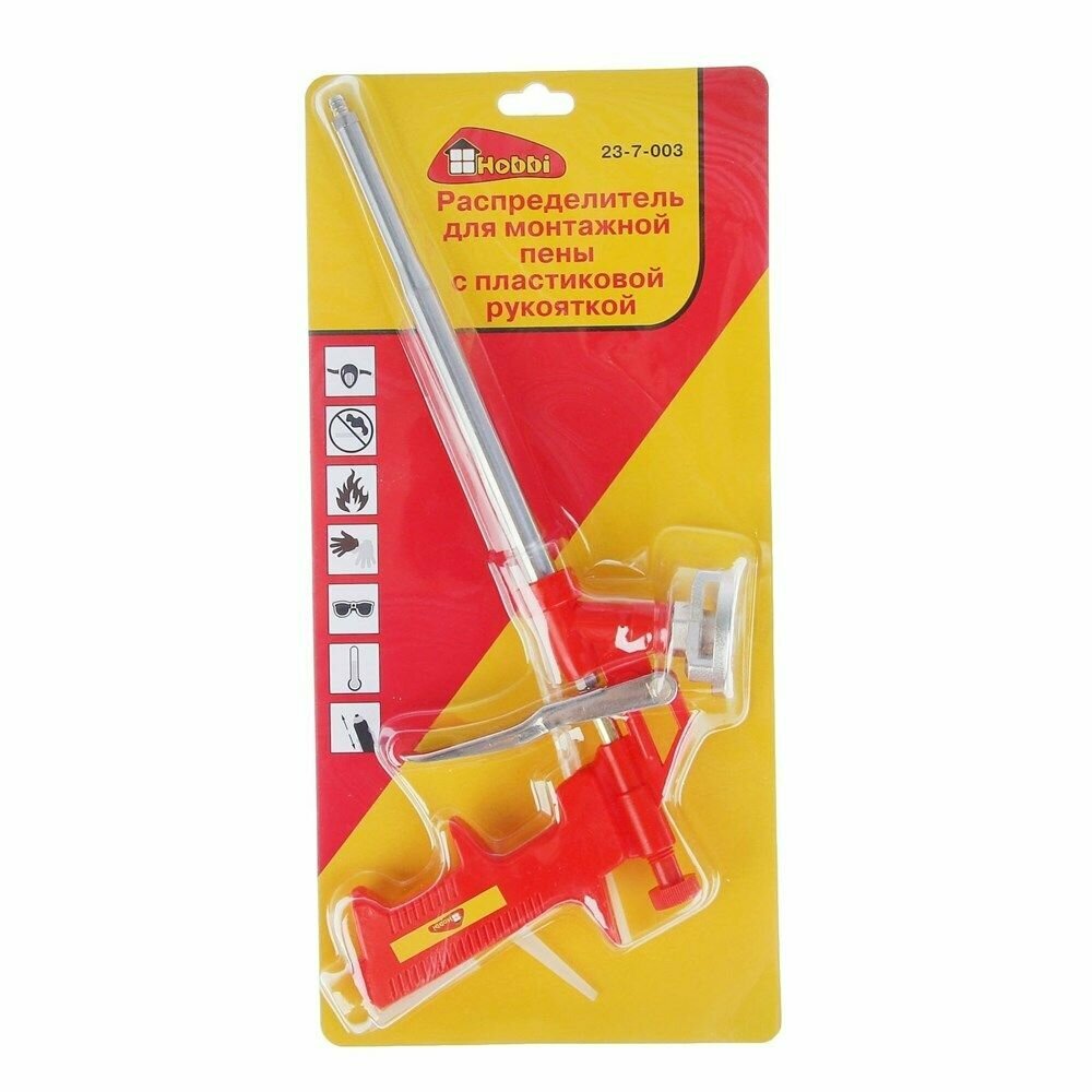 Пистолет для монтажной пены Hobbi с пластиковой рукояткой предназначен для нанесения монтажной пены при установке дверей, окон и других изделий. Применение: для соединения, закрепления, заполнения, склеивания и изоляции общестроительных материалов. Держатель баллона с улучшенным покрытием. Корпус изготовлен из легкого пластика, направляющая изготовлена из стали. После окончания работы необходимо снять баллон и незамедлительно очистить распределитель специальной жидкостью до полного удаления остатков пены. Распределитель позволяет плавно регулировать напор и дозировку количества пены. Для получения качественного соединения и шва следуйте инструкции на балоне. На хололе расход пены увеличивается, а напор пены уменьшается.