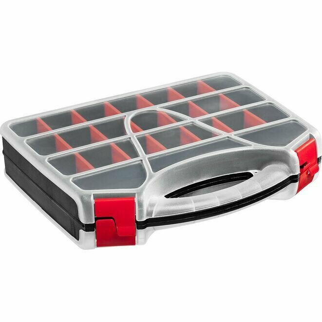 | Прочие особенности и свойства | Сохранность инструментов и крепежных изделий обеспечат профессиональные пластиковые ящики для инструментов и органайзеры «ЗУБР». В зависимости от размера в них можно хранить и транспортировать ручной инструмент или профессиональные приборы и оснастку. Специальные отсеки упрощают доступ к мелким деталям и расходным материалам., , Органайзеры ДОН - оптимальное решение для хранения большого количества инструмента, крепежа и расходных материалов. Возможность настройки количества и размеров секций позволит наилучшим образом организовать пространство для хранения и обеспечит быстрый доступ к инструменту., , Прочный пластиковый корпус, Отсеки для хранения крепежа с двух сторон органайзера, Прозрачная верхняя крышка - видно, что внутри, Регулируемые секции: больше вариантов для хранения инструмента разного размера, Количество секций: 42 шт. |