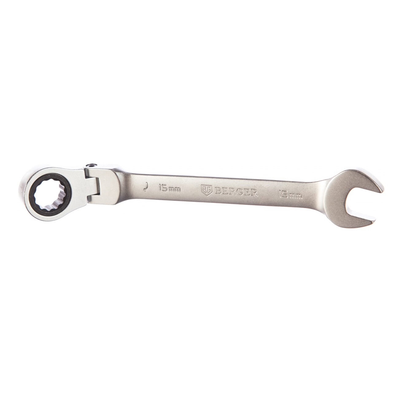 Ключ трещоточный с шарниром BERGER, полностью выполнен из инструментальной хромванадиевой стали, с антикоррозийным покрытием «Satin» (матовый хром). Храповый механизм трещоточных ключей BERGER имеет: 72 зубца, изготовлен из хроммолибдена (Cr-Mo). Твердость материала храпового механизма: 58HRC. Работает с болтом и гайкой: M10.Преимущества DIN 899 Сталь: Cr-V Твердость: 44-49 HRC Сталь храпового механизма: Cr-Mo Твердость храпового механизма: 58 HRC Угол наклона рожков 15° Шаг 5° (72 зубца) Шарнир (Ход шарнира 180°) позволяет повысить функциональность ключа при работе в труднодоступных местах Двухсторонняя маркировка ключа облегчает идентификацию