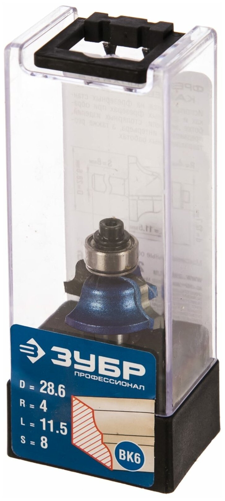 Фреза кромочная калевочная №6, D= 28,6мм, рабочая длина-12мм, радиус-4мм, хв.-8мм, d-12,7мм, ЗУБР Профессионал