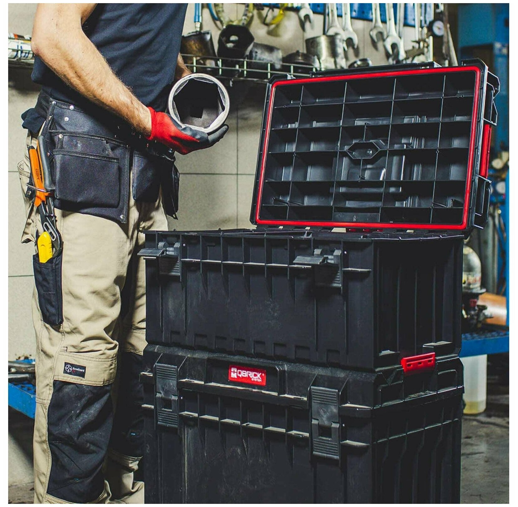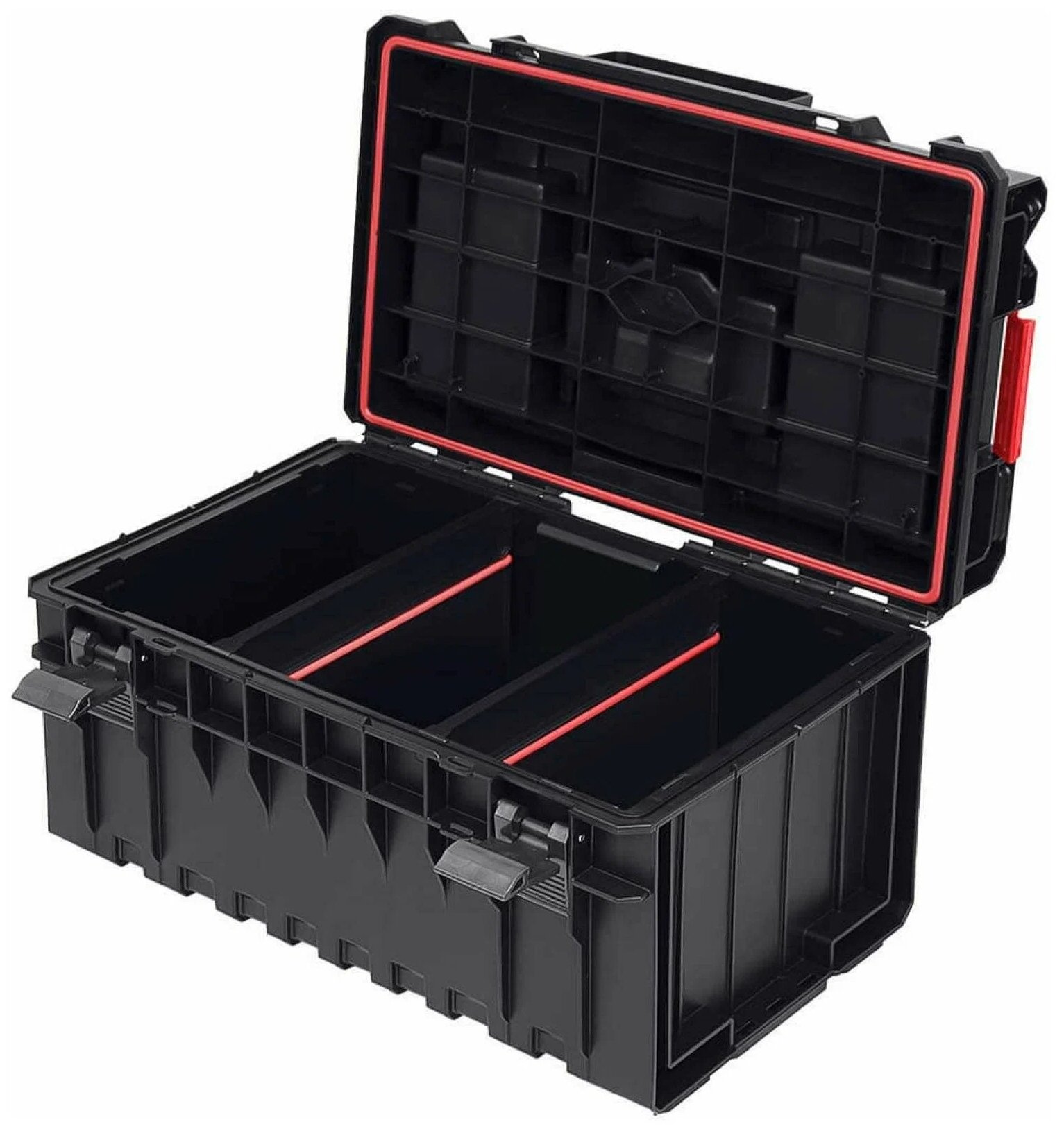 Для хранения и транспортировки инструментов и прочего рабочего инвентаря. Материал: пластик, поликарбонат.Особенности- Корпус ящика выполнен из высокопрочного пластика. Усиленная конструкция ящиков, оснащенная ребрами жесткости, выдерживает нагрузку до 120 кг, т.е. на ящик можно вставать и создавать рабочие помосты.- Герметичная конструкция и уплотнительная резинка обеспечивают полную водо- и пыленепроницаемость.- Замки, ручки, крепления изготовлены из полиамида, что обеспечивает их исключительную прочность и устойчивость к механическим повреждениям и ржавчине, а также прочное крепление ящиков друг к другу при формировании модульного набора.- В крышке расположен желоб для распиловки с линейкой.Особенности моделей- QBRICK SYSTEM ONE BASIC 200: внутри расположены 6 съемных контейнеров двух универсальных размеров; - BRICK SYSTEM ONE BASIC 350: внутри 1 перегородка со стягивающими ремнями, 1 многофункциональная 2-х сторонняя перегородка-органайзер с держателями для различного инструмента; - QBRICK SYSTEM ONE BASIC 450: внутри 2 перегородки со стягивающими ремнями.СовместимостьСовместим со всеми ящиками QBRICK SYSTEM ONE, ящиком на колесах QBRICK SYSTEM ONE/PRO и транспортной платформой QBRICK SYSTEM ONE.