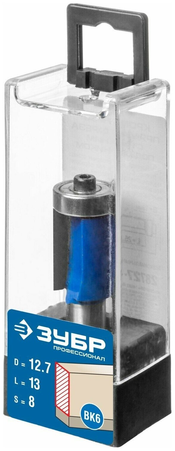 Фреза кромочная с нижним подшипником(3 лезвия), D= 12,7мм, рабочая длина-25,4мм, хв.-8мм, d-12,7мм, ЗУБР Профессионал