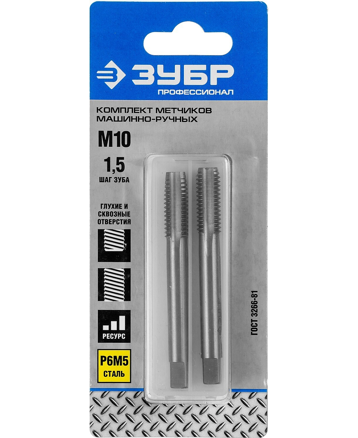 Комплект метчиков Зубр , М10x1.5мм, сталь Р6М5, машинно-ручные