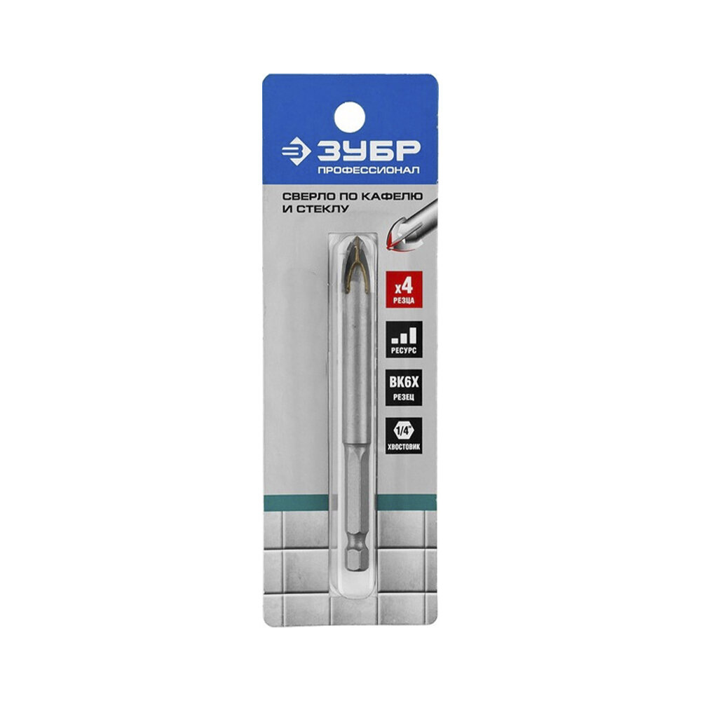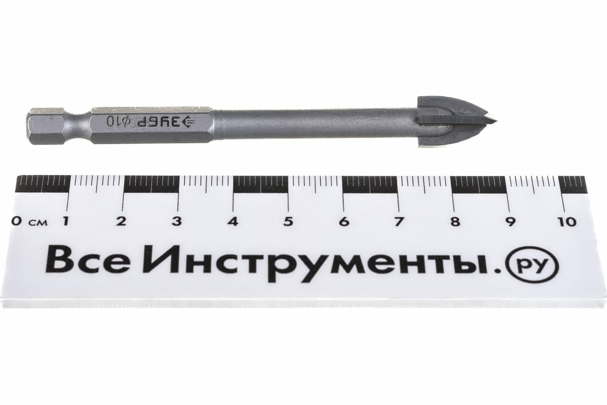 Сверло по кафелю, керамике, стеклу, с четырьмя режущими лезвиями, шестигранный хвостовик, 10 мм, ЗУБР "ПРОФЕССИОНАЛ" 29845-10