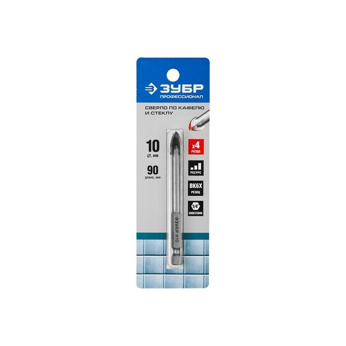 Сверло по кафелю керамике стеклу ЗУБР Ф10х90мм (ПРОФЕССИОНАЛ 29845-10_z01)
