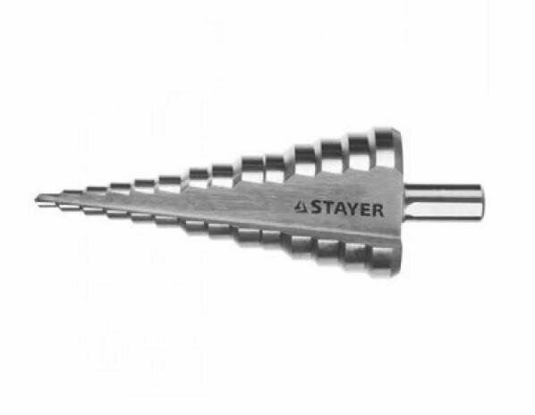 Сверло ступенчатое Stayer 29660-4-12-5 4-12мм, HSS-R, быстрорежущая сталь М2(S6-5-2) Р6М5, класс А 5 ступеней