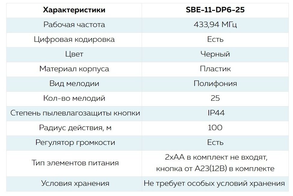| Тип звонка | беспроводной |